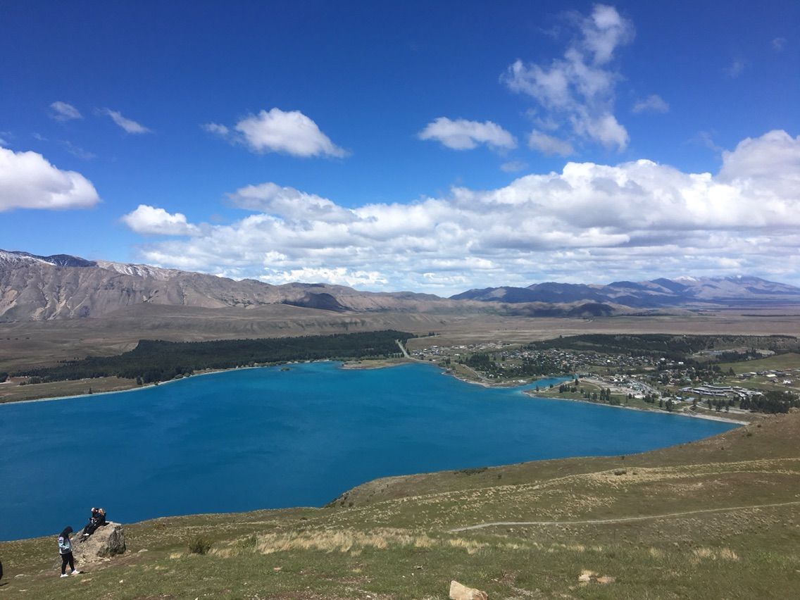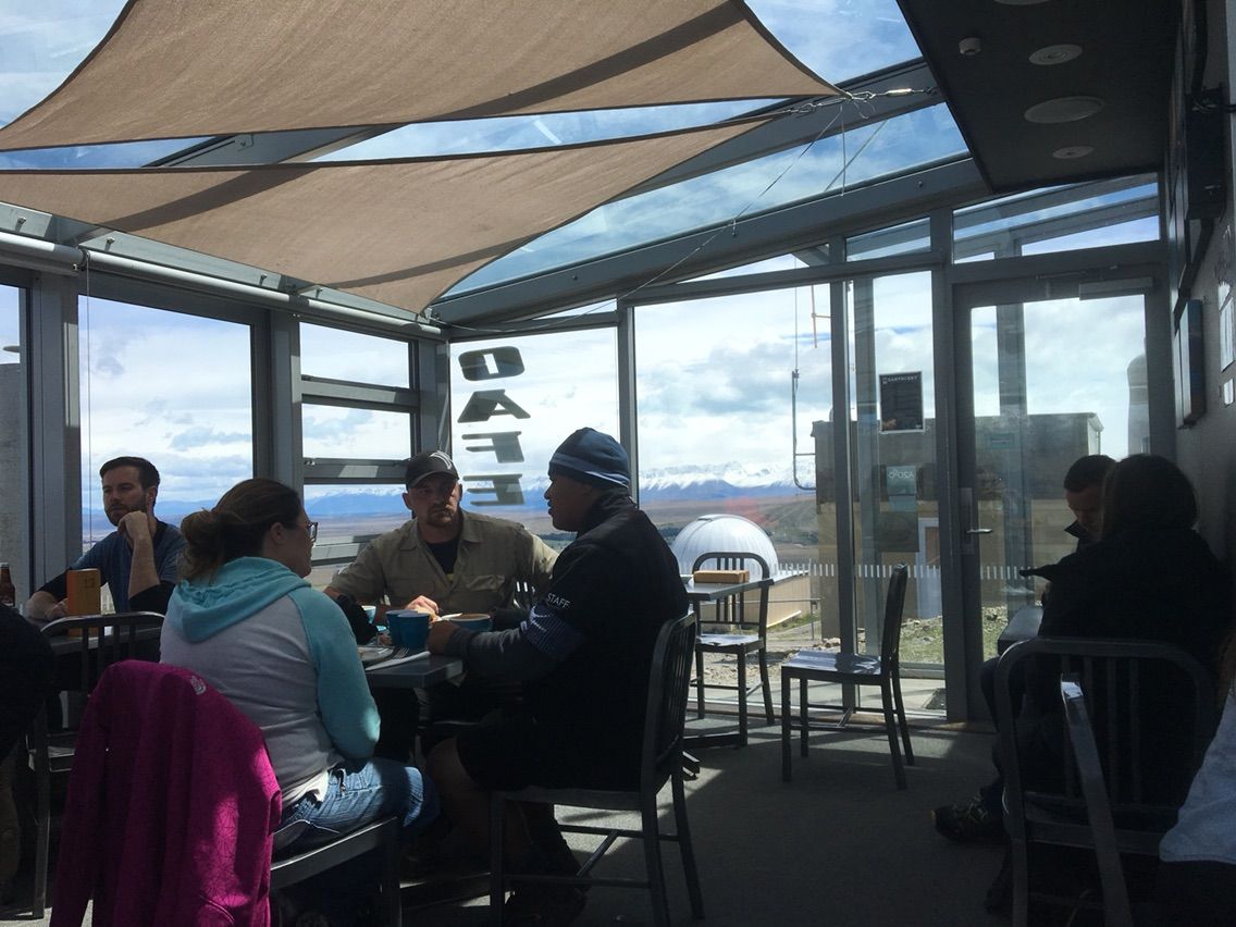 マウントジョン天文台は,テカポ湖を見下ろす山の上にあって,お昼間は誰でも山頂まで登ることができます。天文台自体は公開されていませんが,山頂にはアストロカフェという名のカフェがあって,コーヒーを飲みながらテカポ湖の姿を見ることができます。