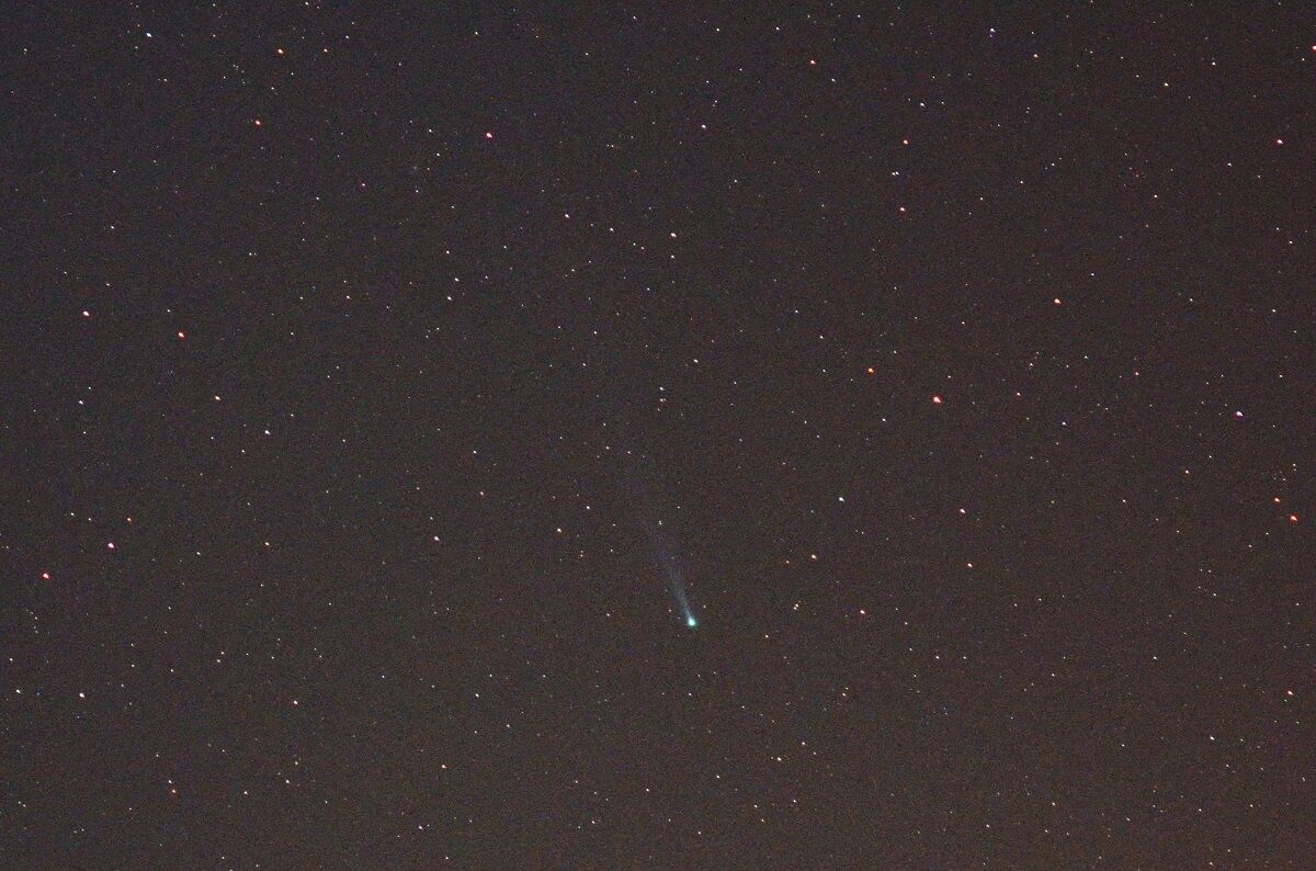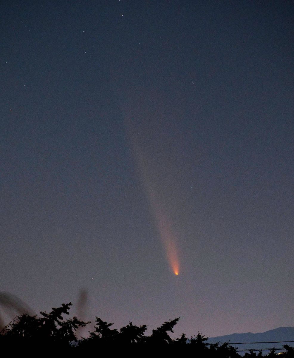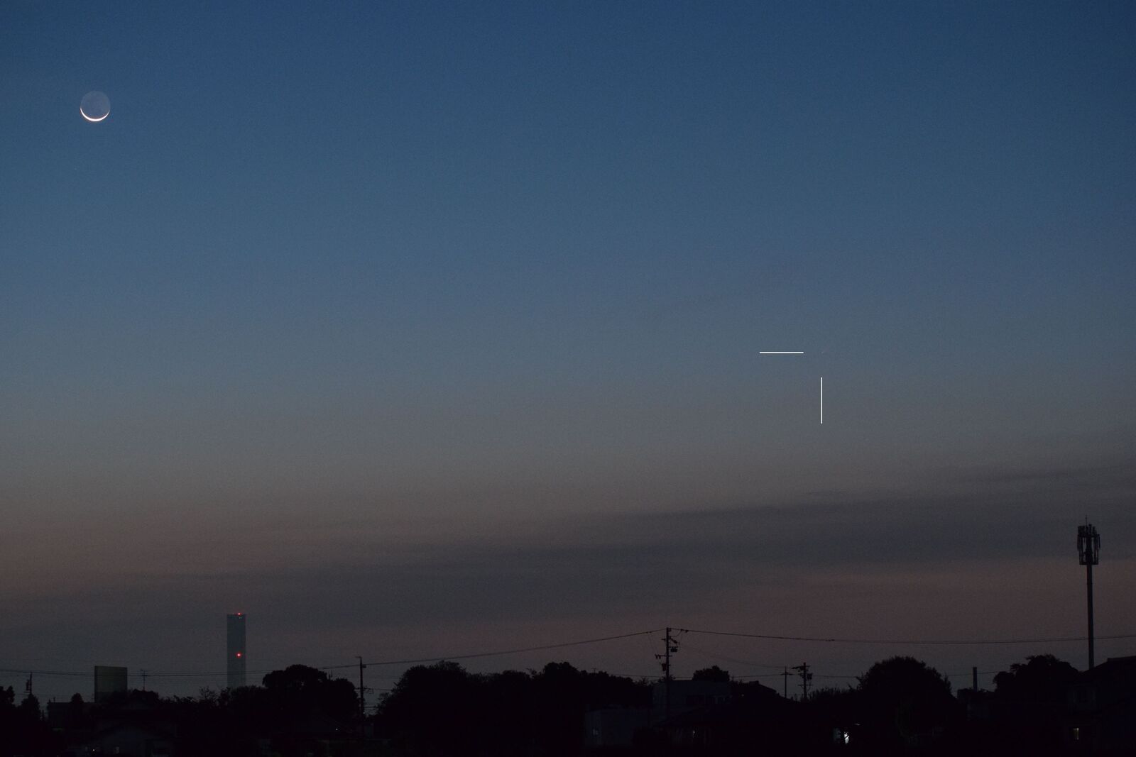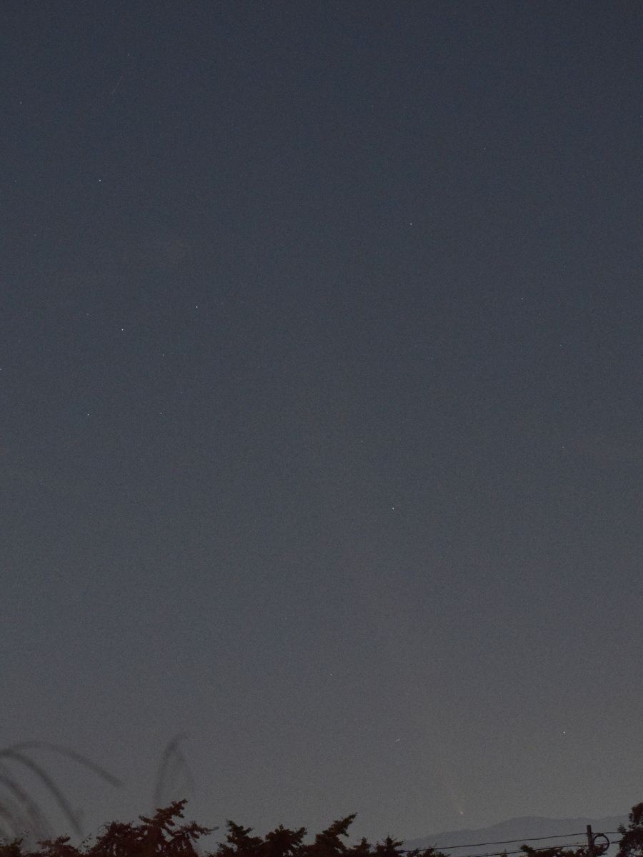 10月18日は,旅行中の岩手県水上町で,あまりに天気がよい日となりました。もともとレモン彗星を写す気はなかったので,三脚を持ち合わせていませんでしたが,試しに,持っていたミラーレス一眼をその方向に向けて,手持ちで写してみたところ,かわいい尾をつけた彗星を収めることができて,びっくりしました。いくら騒いでいるとはいえ,天文台ならともかく,一般の人には,夕方ということもあり,また,町中では街灯が明るいということもあり,実際に見ることは困難です。私は,以前よりは興味が薄れてきたとはいえ,それなりにこれまで多くの彗星を見て来たので,東北旅行から帰ったら,これなら簡単に写せるだろうと思いました。