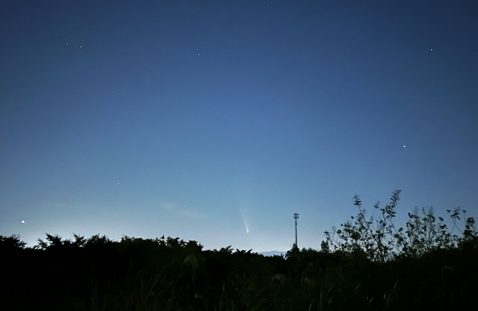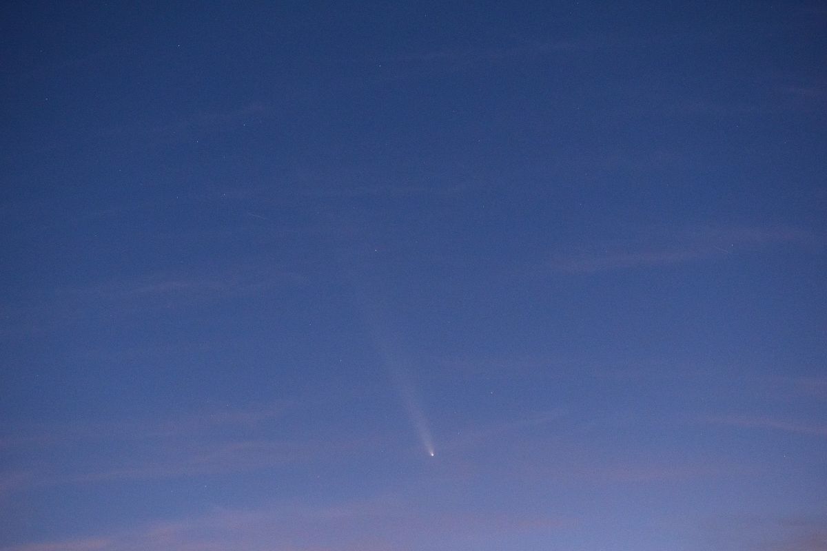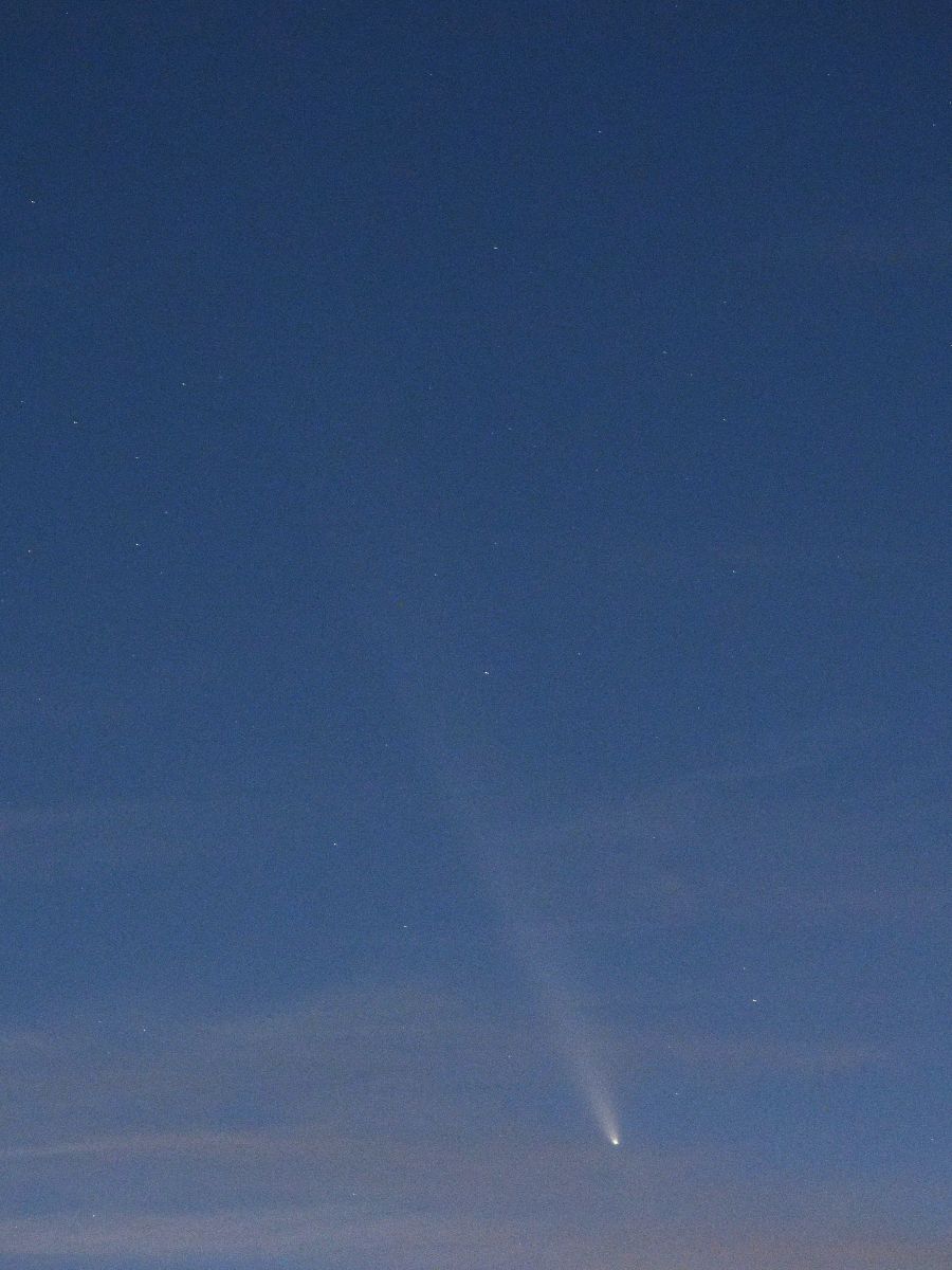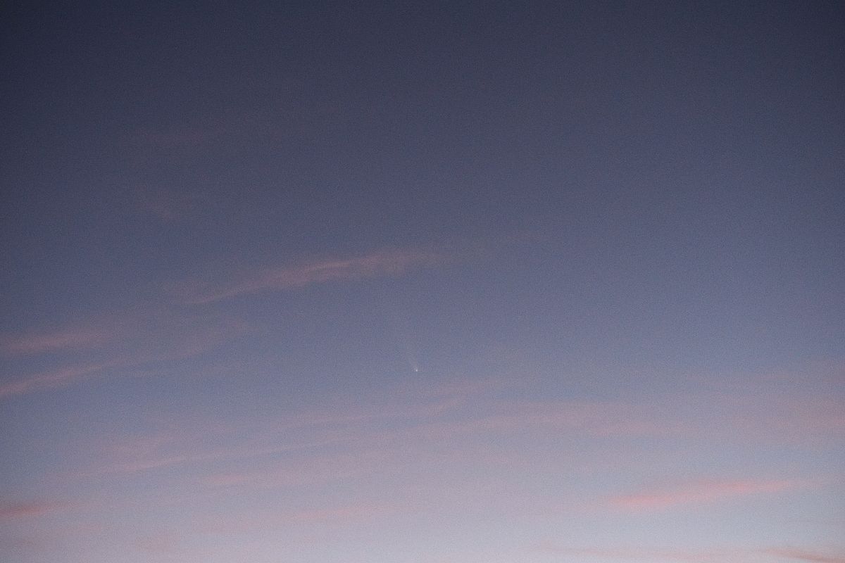 10月18日は,旅行中の岩手県水上町で,あまりに天気がよい日となりました。もともとレモン彗星を写す気はなかったので,三脚を持ち合わせていませんでしたが,試しに,持っていたミラーレス一眼をその方向に向けて,手持ちで写してみたところ,かわいい尾をつけた彗星を収めることができて,びっくりしました。いくら騒いでいるとはいえ,天文台ならともかく,一般の人には,夕方ということもあり,また,町中では街灯が明るいということもあり,実際に見ることは困難です。私は,以前よりは興味が薄れてきたとはいえ,それなりにこれまで多くの彗星を見て来たので,東北旅行から帰ったら,これなら簡単に写せるだろうと思いました。