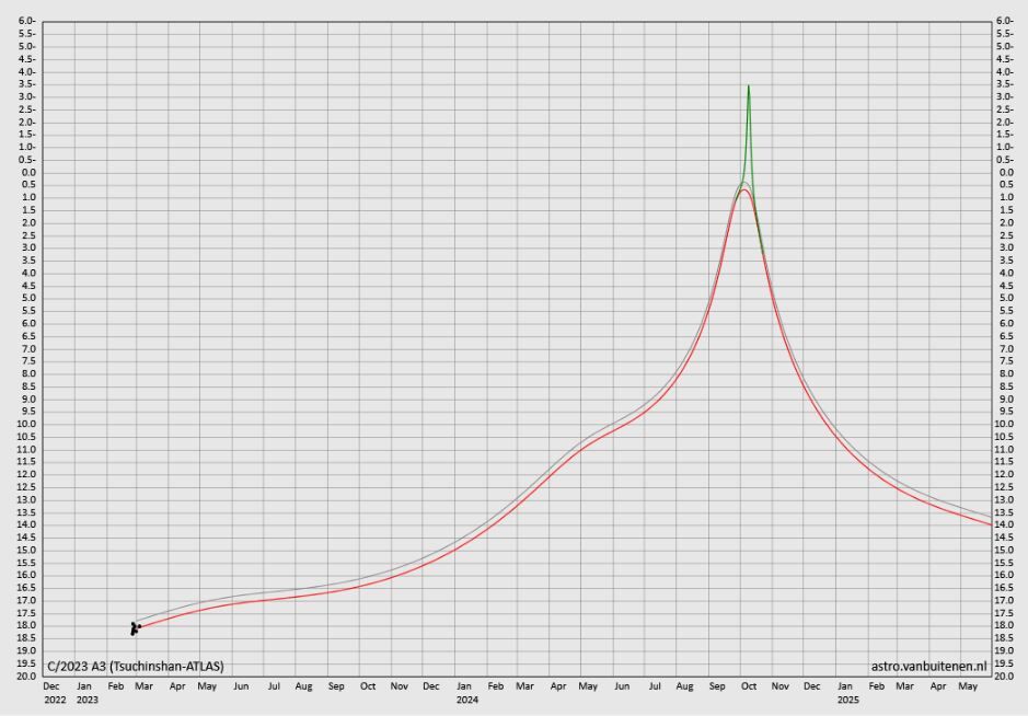 発見後の観測で,彗星であることが確認されたレモン彗星は,予想よりも突然増光したことで,俄然,注目されるようになりました。そして,2025年10月21日には,地球から約8,900万キロメートルに近づき(=近地点通過),2025年11月8日には,太陽から約7,900万キロメートルまで近づいて(=近日点通過),このとき,最大でマイナス等級になるのでは? と期待されました。