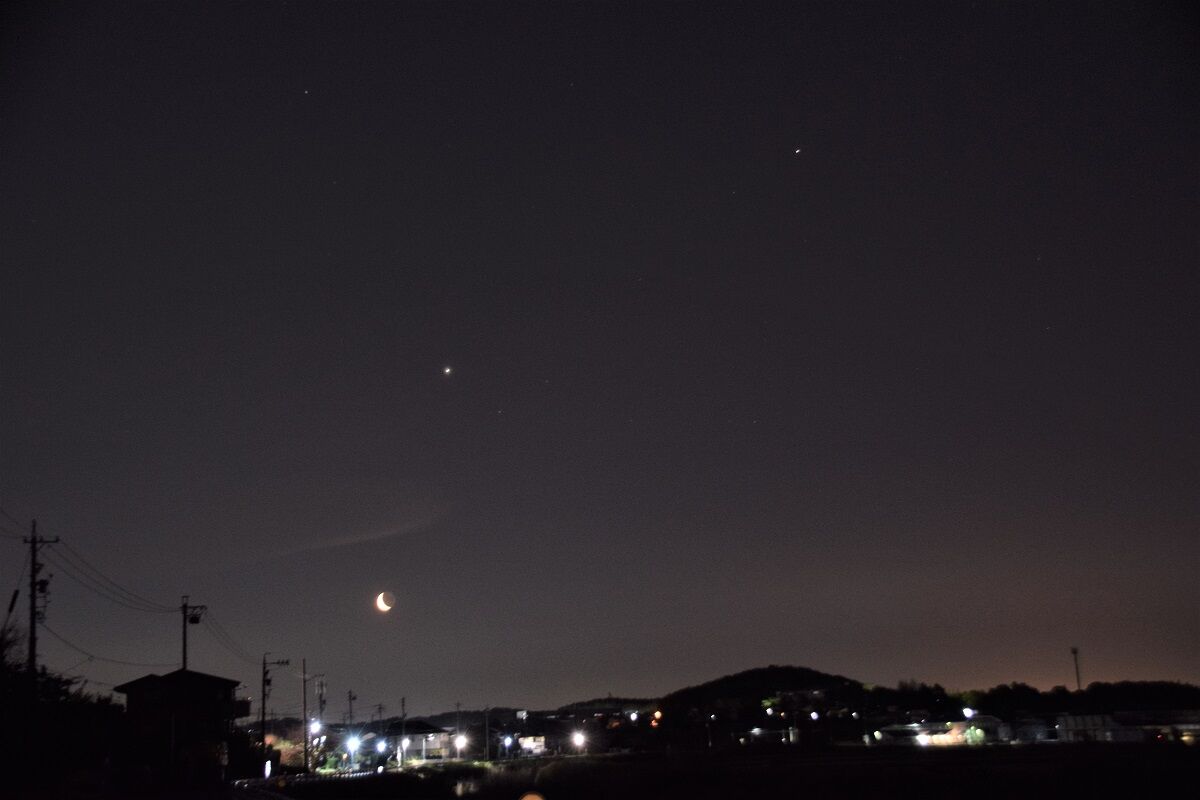 昨年の10月中旬,その時期に夕方の西の空に明るく見ることができた紫金山・アトラス彗星(C/2023A3 Tsuchinshan-ATLAS)を写真に撮ろうと,しかし,遠出をする気力もなくなり,たとえ気力があったとしても,クマが怖いので,できるだけ家の近くで,街灯のない場所を,と探し回って見つけた秘密の場所があります。そこで,今回も,天気のよい日は,再びその場所に出かけて,固定撮影をすることにしました。