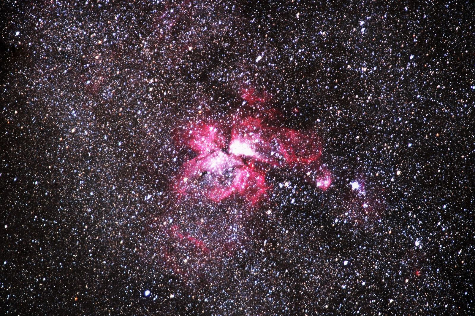 ηカリーナ星雲のガスの背景には微光星がたくさんに見えていて,これもまた絶品です。