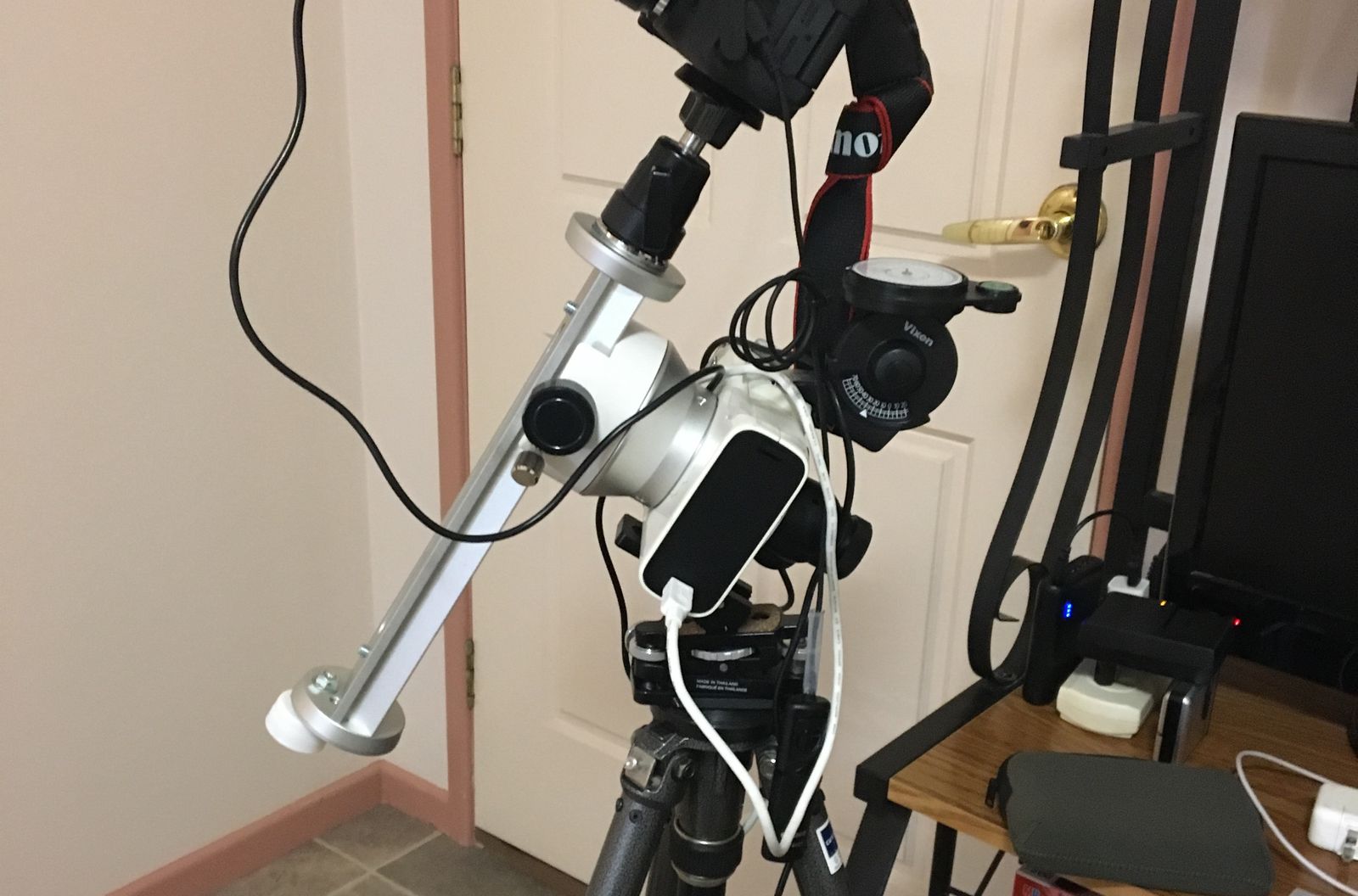 これを用いることで,ほぼ適当に極軸を合わせれば厳密に極軸が合っていなくても点像に写る魚眼レンズと広角レンズを持っていって使用しました。その当時はそれだけで満足しました。