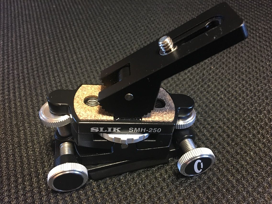 そこで,せっかく購入した結構高価な架台だったのですが使用をあきらめて,新たに,発売されたばかりの5番目の写真にあるスリックの架台を購入してこちらでも試してみることにしました。結果として,こちらの方はガタもなく,しかも精密な微調整ができて便利なことがわかりました。