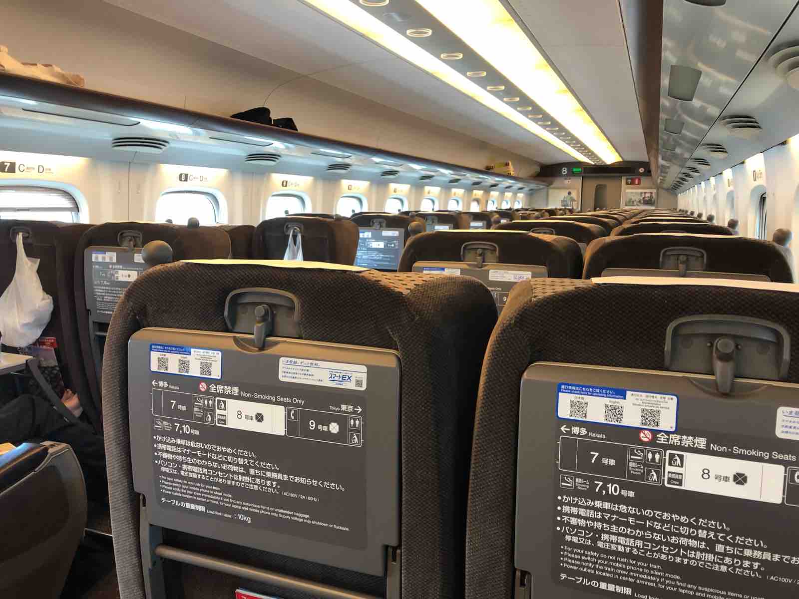 今回のプライムエコノミーも,そのまたひとつ下のエコノミーコンフォートも,最前列は足元がすごく広いので,窓側に座っても隣の人の迷惑にならず移動して通路に出ることができるから,窓側席をとっても問題がない。最前列の欠点と言えば,ディスプレイが前の席の背中の部分にないから見にくいということと手荷物を置く場所がないということだが,私は機内で映画を見ないし,荷物も少ないのでこれもまた問題はない。