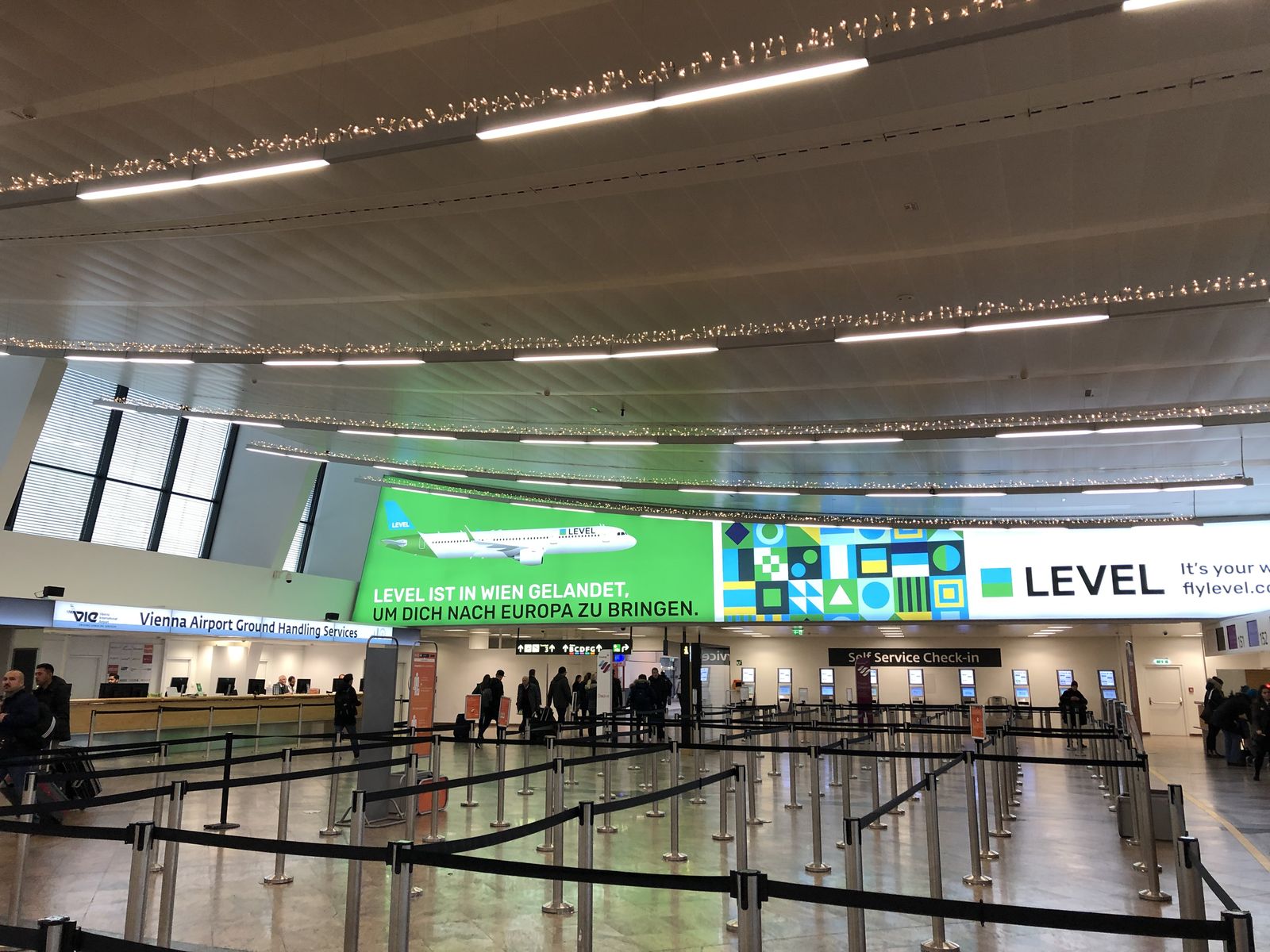 空港ではまだフィンランド航空のカウンタが開いていなかったので,自動チェックイン機で搭乗券を手に入れてから,キャリーバックを預けるためにカウンタが開くのを列の先頭で待ちました。ウィーンからはヘルシンキ経由で帰ります。