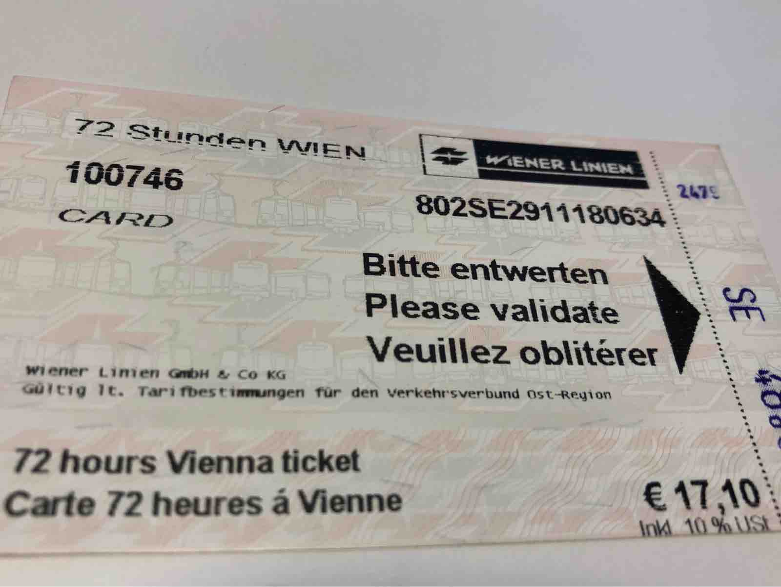 電車の駅に改札のないウィーンでは,「通常」は,チケットを買ったらはじめに使うときに駅の入口にある刻印機に通して日にちを印刷しないといけないというシステムです。しかし,私の買ったチケットはそうした刻印をしなくても大丈夫なのかが心配になりました。私の買ったチケットは大きくて刻印機に通りません。しかし,チケットにはドイツ語しか書かれておらず,どうすればいいのかさっぱりわかりません。聞けばいいだろう,と思うかもしれませんが,駅員なんてひとりもいません。何事も過保護な日本とは違うのです。