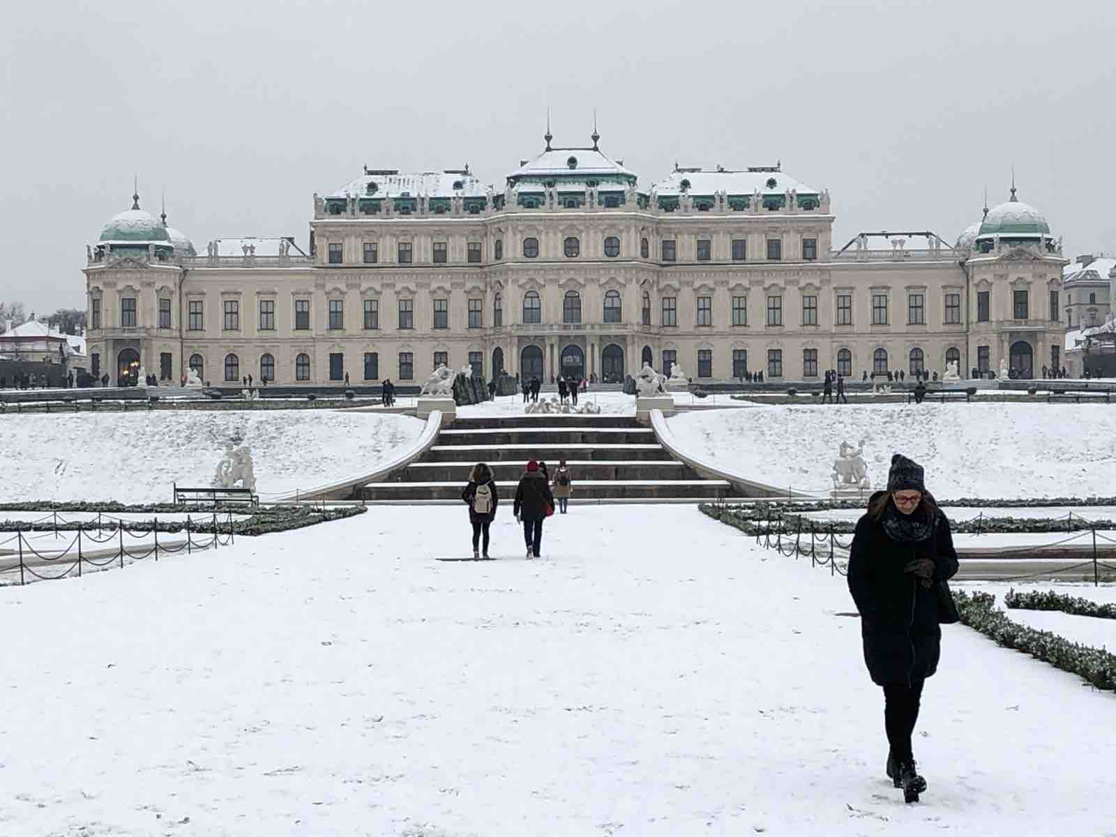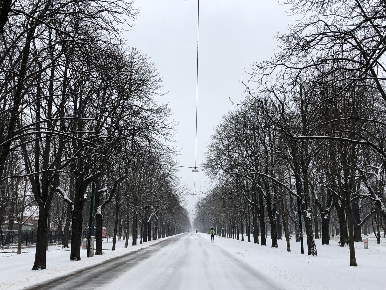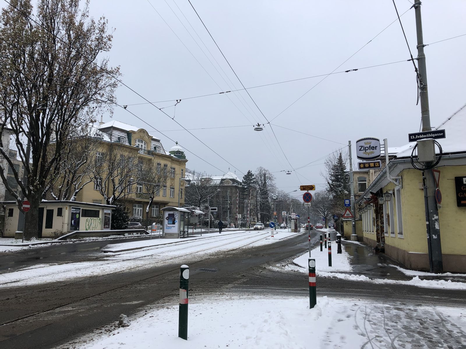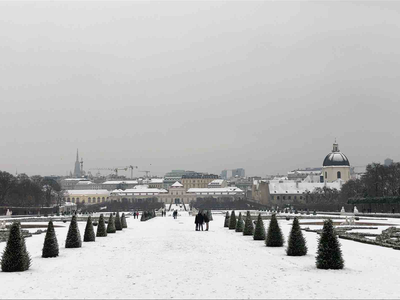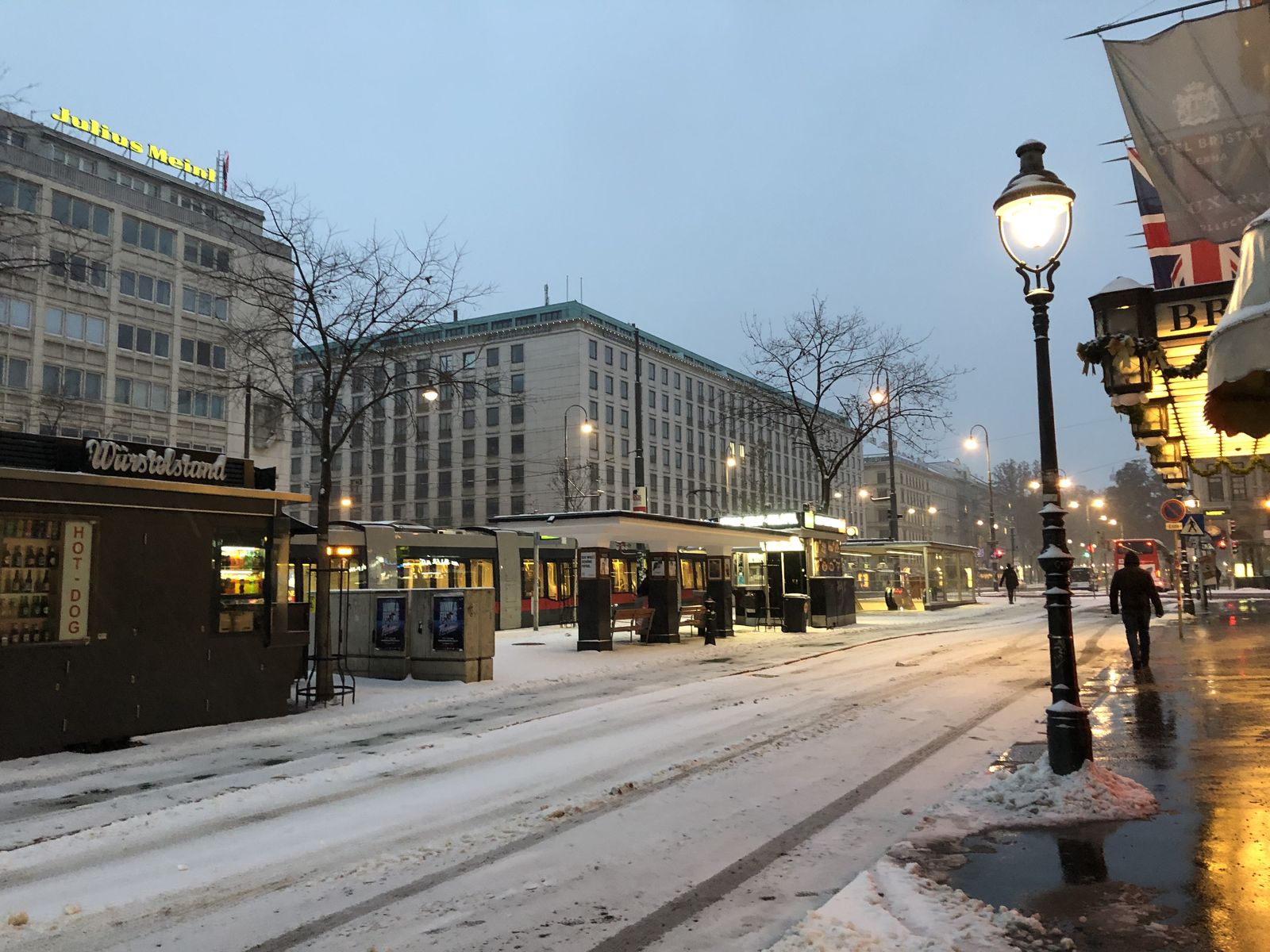 朝,部屋の窓を開けると,雪! そう,雪が降っているのです。何ということでしょう。最終日に雪なんて,さらに出来過ぎです。もしこれが昨日だったら,ザルツブルグに行くこともできなかったかもしれません。この旅ではじめて天気予報を調べると,どうやらこの雪は午前中には止むようなので,まったく心配する必要はありませんでした。今日のお昼間は,これまで行くことができなかったウィーンの見どころをさらに見て回ることにして,早朝ホテルを出ました。いよいよ旅も最終段階です。