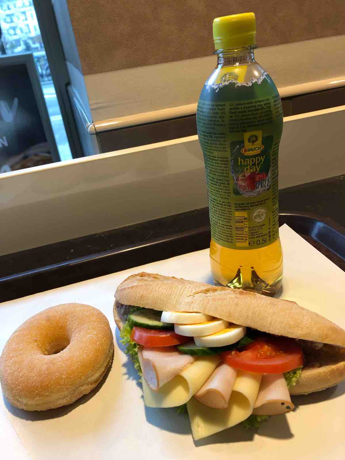 カールスプラッツ駅の地下街まで行って,まずは朝食をとりました。