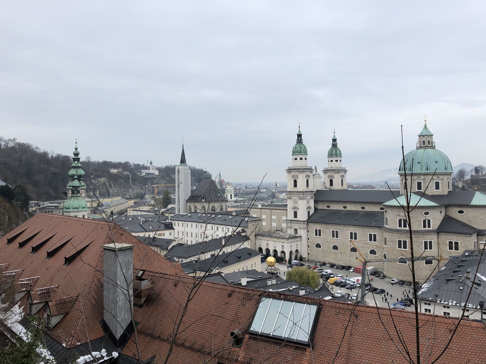 私は今回の旅で行くまで,ザルツブルグという名前は知っていてもそれがどこにあるのかさえ知りませんでした。しかも,こうして列車で簡単に行くことができるのにはびっくりしました。ザルツブルグに生まれたモーツアルトが子供のころから父に連れられてウィーンやミュンヘン,パリなどに演奏旅行に出かけたという話も,こうして行ってみると,とてもよくわかりました。