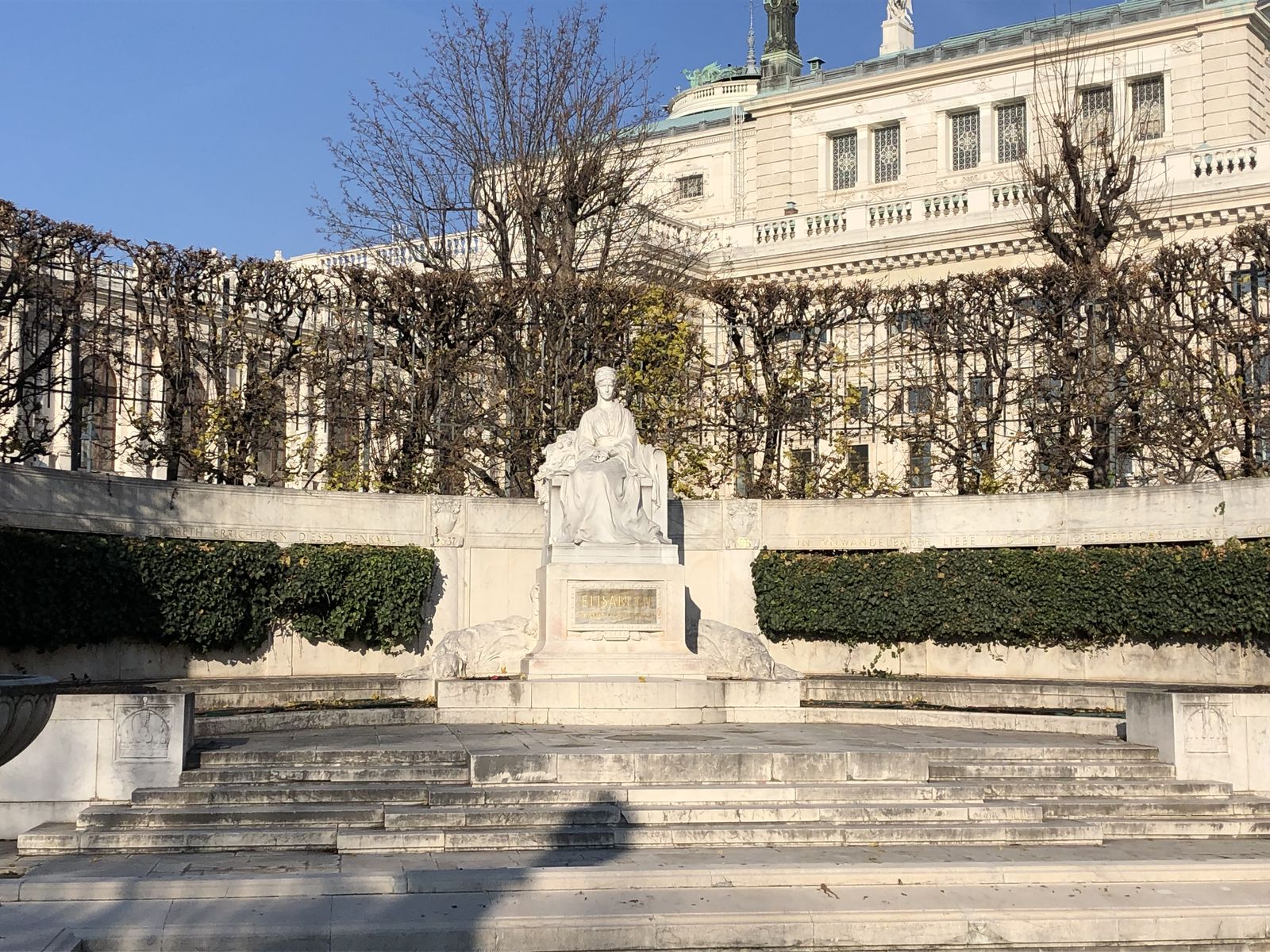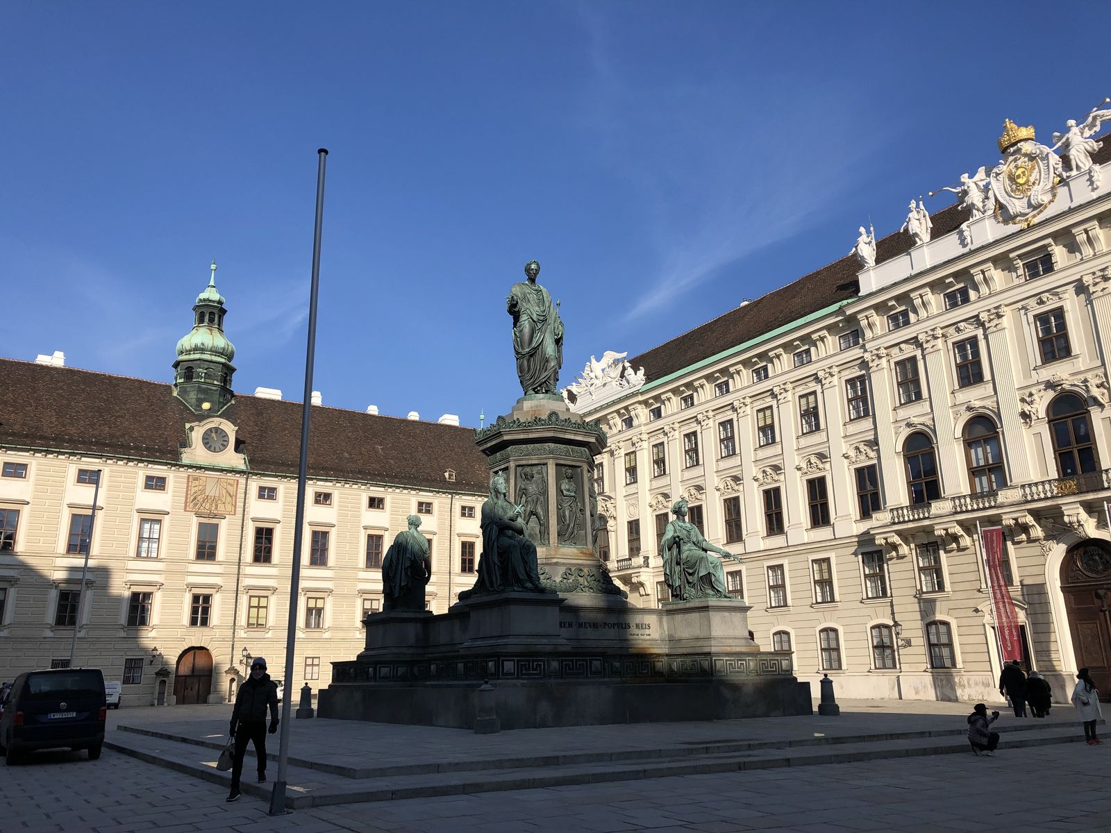 宮殿を後にして市内に戻り,市庁舎あたりから王宮を散歩しながらアルベルティーナ広場に戻りました。ウィーンはオーストリアの首都なので,このあたりには大統領の官邸や首相の執務室,国会議事堂などもあるのですが,ここは官庁街というより歴史的遺構のような感じなのが独特でした。なお,現在のオーストリアの大統領は経済学者のアレクサンダー・ファン・デア・ベレン74歳,首相は国民に人気のある若きリーダー,セバスティアン・クルツ31歳です。