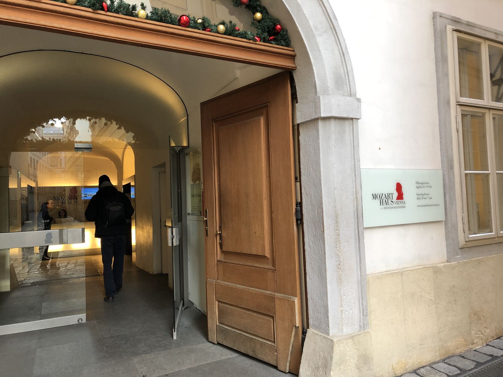 私が目指していたのはモーツアルトハウスでした。ここは,モーツアルトが1784年から1787年まで住んで「フィガロの結婚」などを作曲したところです。今はこのアパートの4階までが博物館となっていて,その上は一般の人が住んでいます。建物は改装されていますが,階段は当時のままなので,ここではエレベータを使わずモーツアルトも使った階段を登るのが通というものです。