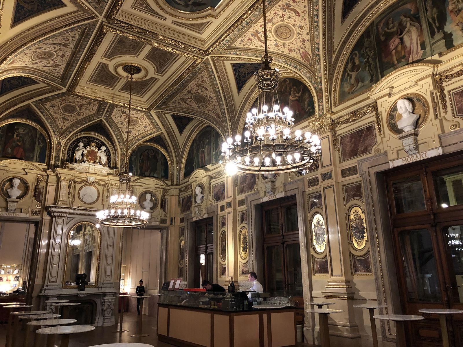 私は,この旅では来る前からずいぶんと想い入れのあったすばらしい場所にほとんど行くことができたのですが,それよりも一番印象に残ったのが,なんとこのカフェだったのです。これは,日本で小さな町に行って,駅前にあった小さな喫茶店に入ったようなものですが,さすがウィーンの喫茶店,すてきでした。