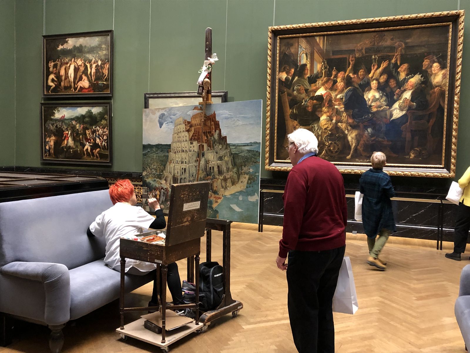 美術史博物館はフェルメールをはじめとして,ブリューゲルやベラスケス,ラファエロなどが所蔵されていて,このときブリューゲルはさらに多くの作品を集めて,特別にブリューゲル展をやっていました。私の最大の目的はフェルメールだったのですが,どこにあるのかさっぱりわかりません。はじめのうちさまよって,やっとフェルメールをみつけました。ほとんど人がいませんでした。ワシントンDCのナショナルギャラリーでフェルメールと見たときもそうでしたが,日本に来るとあれだけ黒山の人だかりになるフェルメールも,こうして現地に来ると,独り占めすることができるのです。私は10分以上フェルメールを眺めていました。なお,こちらの美術館では通常作品を写真に撮ることができます。