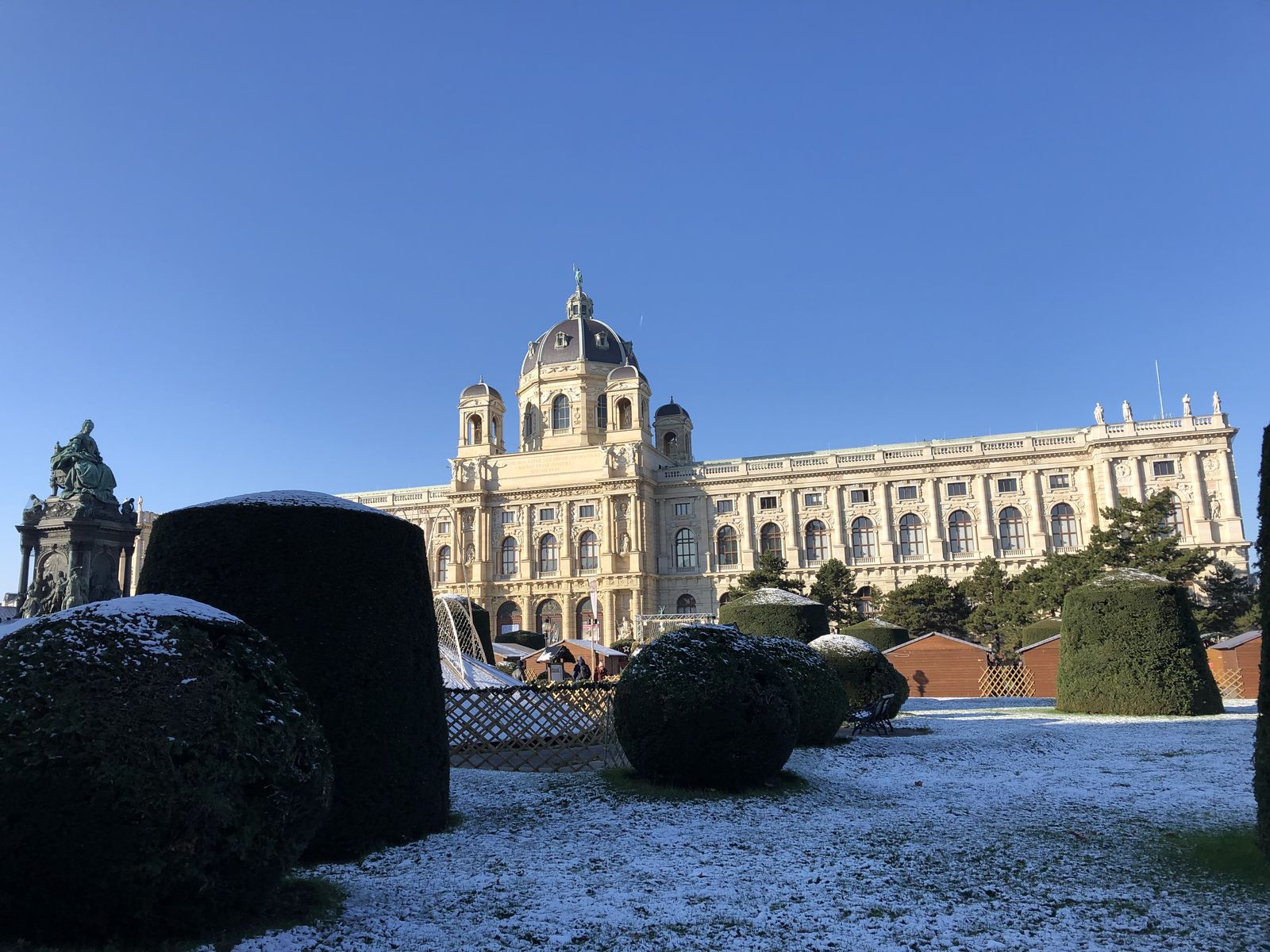 そのままリングを歩いていくと,美術史博物館に着きました。美術史博物館の前もまた,別のクリスマスマーケットで賑わっていました。