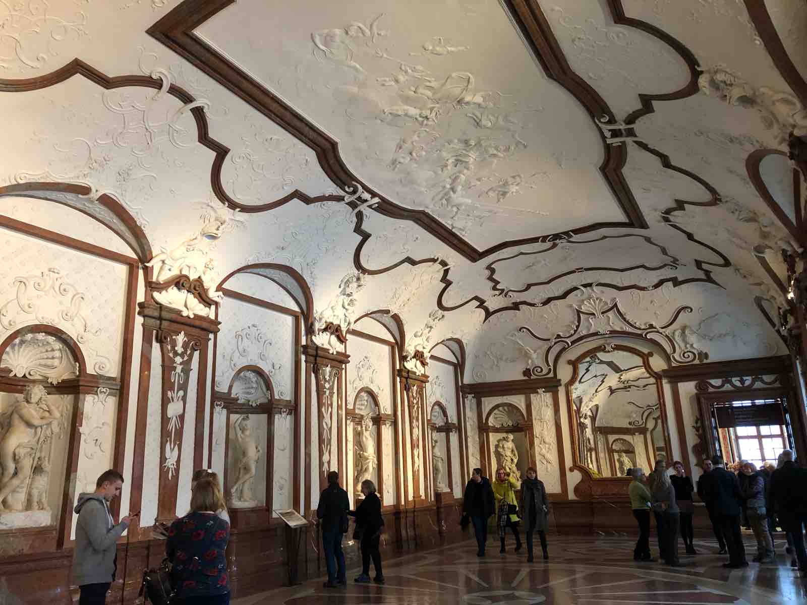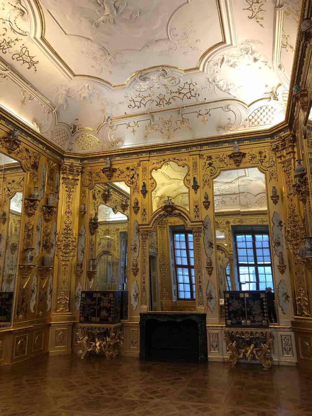 上宮の絵画を堪能してから,庭園を歩いて下宮に来ました。下宮では,まずプリンツ・オイゲン公の豪華な居室を通ると,再びここも美術館になっていました。下宮の奥まったところには現代美術の展示があったのですが,ここまで前衛になると私にはさっぱり理解不能です。ある部屋には裸体の絵画とともに,体全体を黄色に塗られた全裸の女性が絵画の一部として歩いていたのには驚きました。さらに,別棟があって,そこもまた美術館でした。