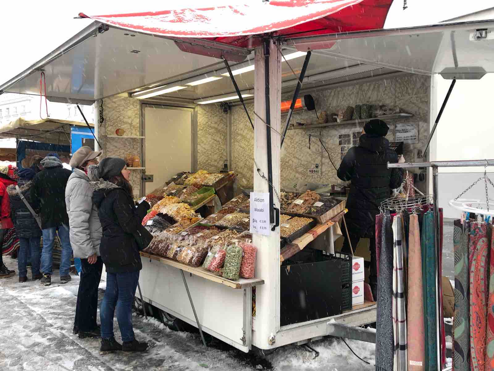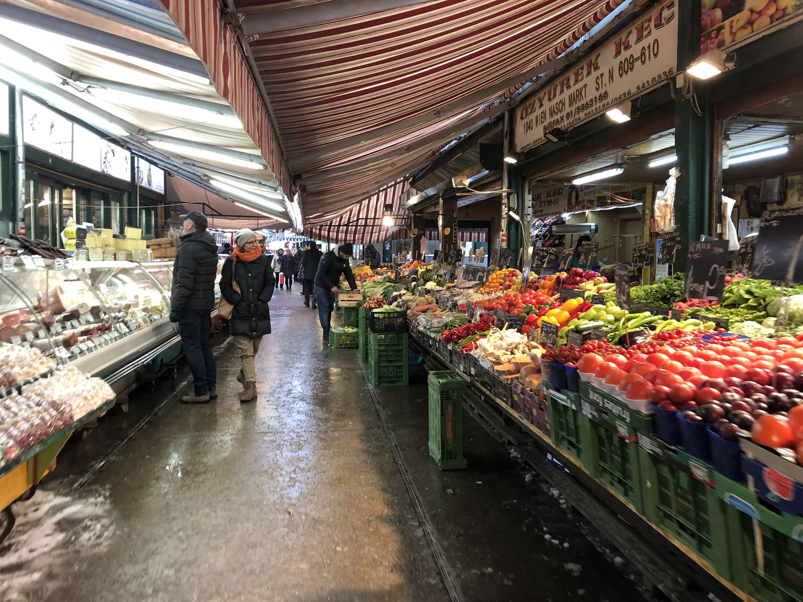 ベルヴェデーレ宮殿を出て,ナッシュマルクトまで歩きました。「マルクト=マーケット」というのは食料品市場街です。飲食店もあるので,オペラを見る前にここで軽く夕食でも,と思ったわけです。