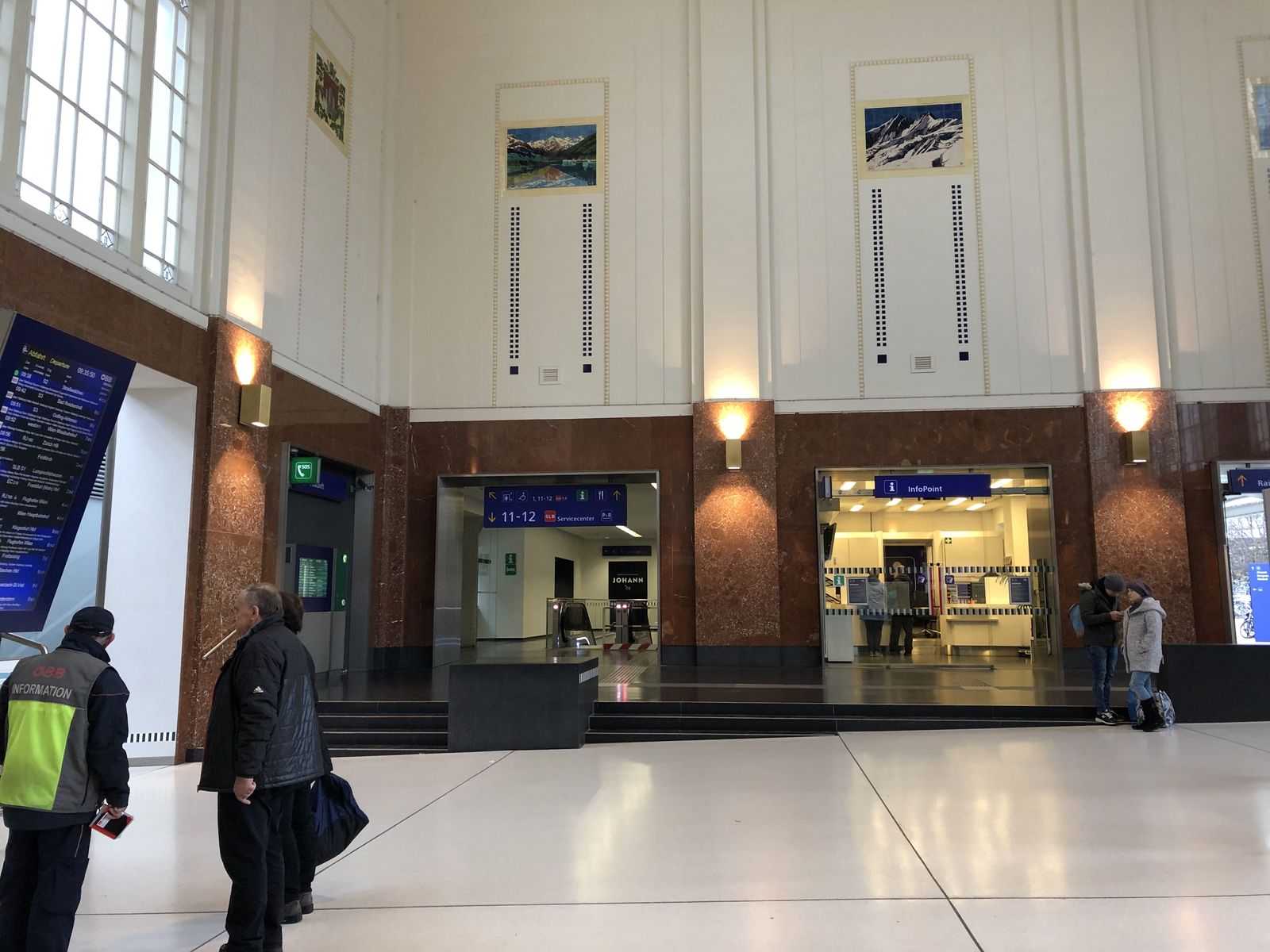 この日私が普通に駅の自動販売機でチケットを買っていれば,おそらくその予定で進んだのでしょうが,空港を出た通路から近郊列車の駅に続く坂道の通路の手前に近郊電車の案内窓口があったので私はそこに吸い寄せられて,窓口の横に併設されていた普通のとは違う自動販売機でチケットを買ってしまったのが大間違いでした。こんなところに吸い寄せられなくてもそのまま駅まで降りればちゃんと自動販売機があったのです。
