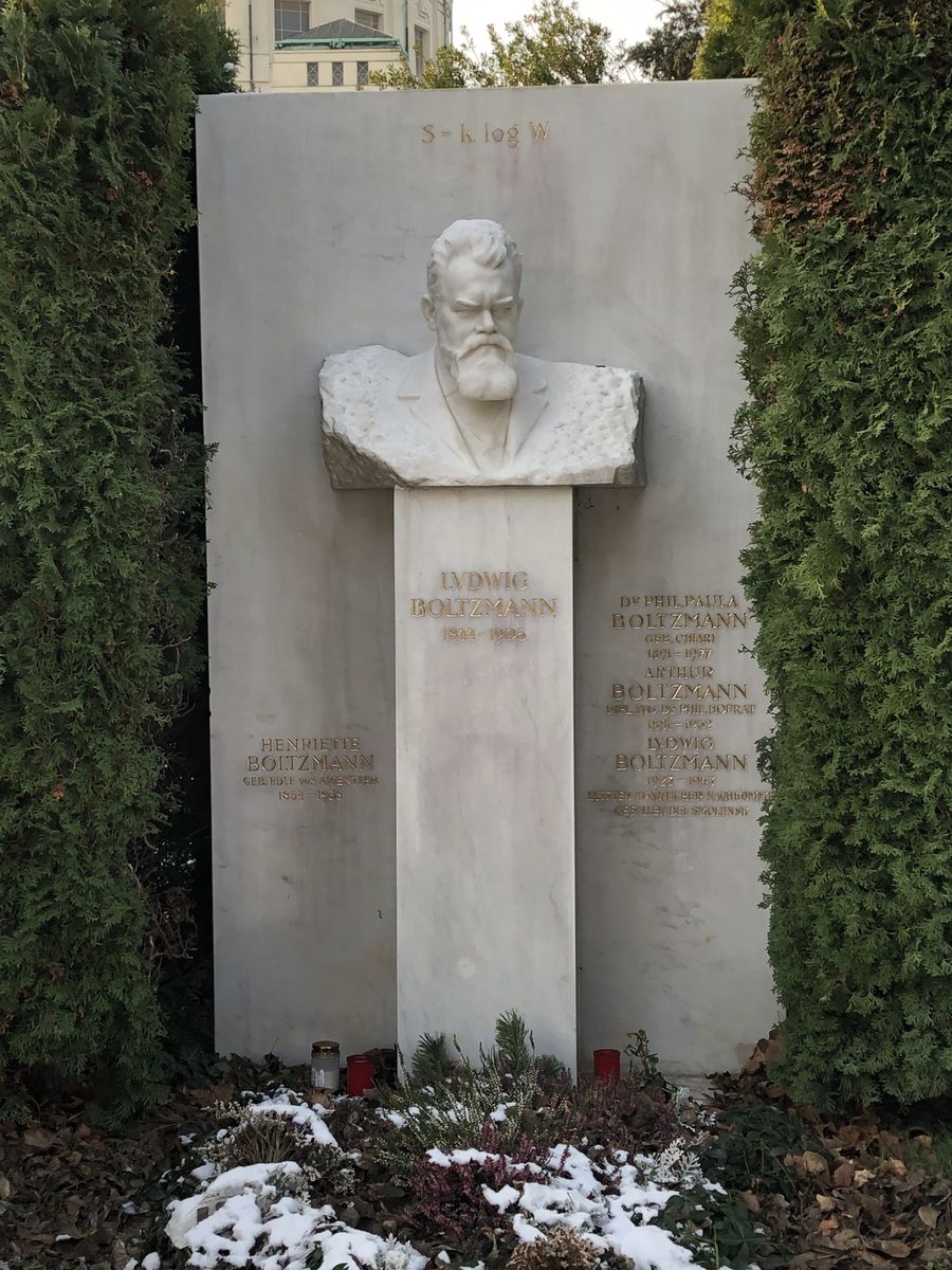 音楽家の墓を左手にして前方にカール・ルェガー教会が見えます。そこに向かって少し歩いたところの右手にあったのが,物理学者ボルツマンの墓です。墓碑にはボルツマンの関係式 S=k logW が刻まれていました。