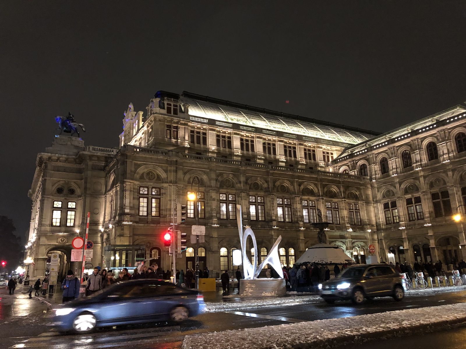 ナッシュマルクトを出て,一度ホテルに戻り着替えました。さあ,これから,この旅最後のイベント,オペラ鑑賞です。私は生まれてはじめてオペラを見たとき,文化に精通した大人たちはこんなすばらしいものを密かに? 楽しんでいるんだな,ということを知って驚いたのですが,まさにオペラというのは音楽と舞台劇を融合した最高の芸術です。