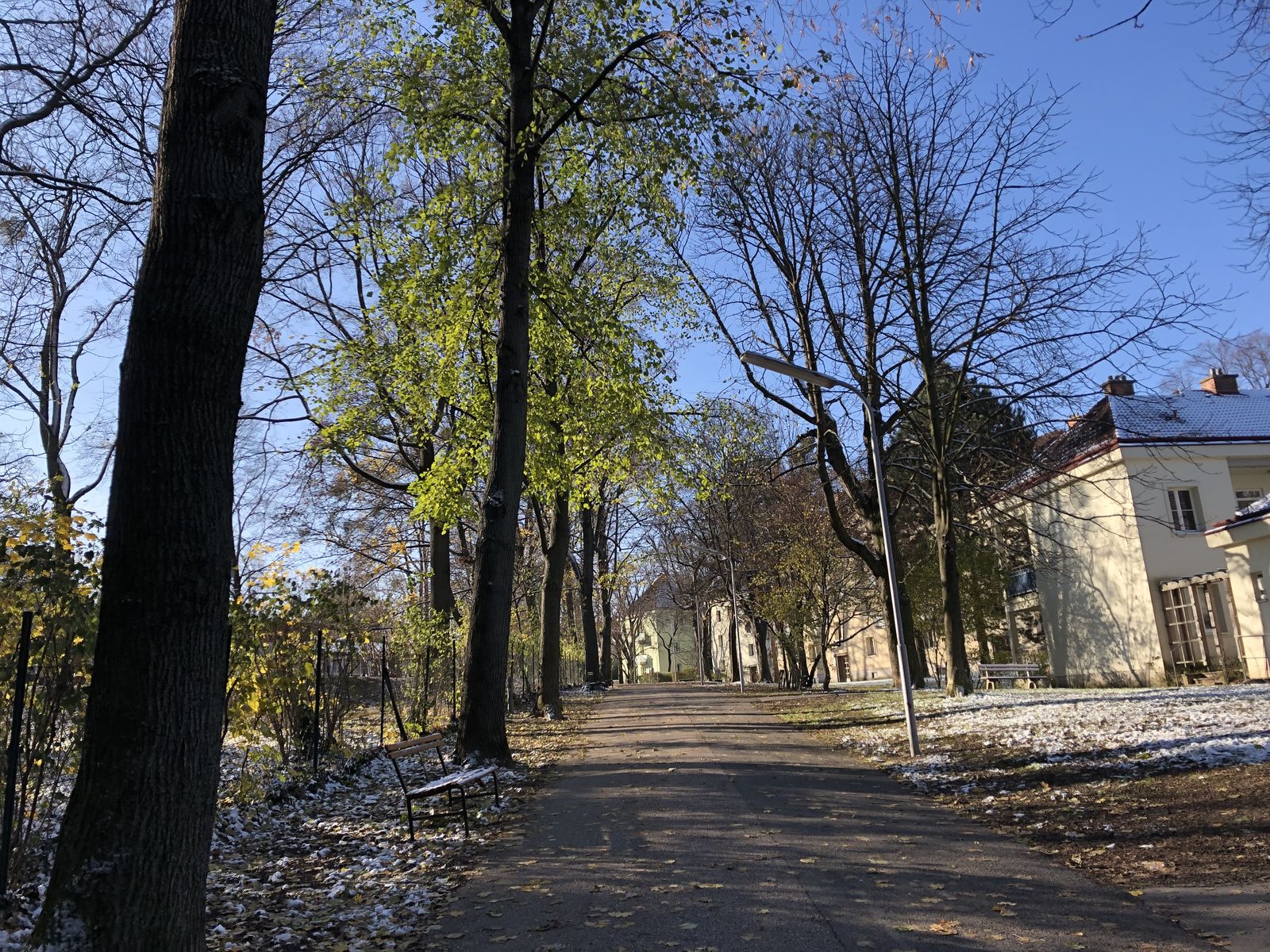 雪景色がこの公園の並木道をより幻想的にしていました。