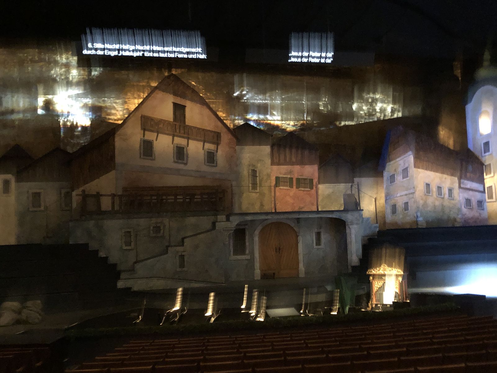 見学ツアーでは,まずモーツアルトのホールに案内されました。その次が,この劇場で最も重要でかつ有名なフェルゼンライトシューレでした。フェルゼンライトシューレはもともと大司教の騎兵学校や厩舎のあったところで,岩壁を削って作られています。映画「サウンド・オブ・ミュージック」でもコンクールのシーンで登場します。最後は大ホール。ステージに上がって楽屋裏を見ることができました。案内はドイツ語と英語でしたが,ドイツ語がわからない私を含めた3人の日本人のために,わざわざ英語の案内をしてくれました。