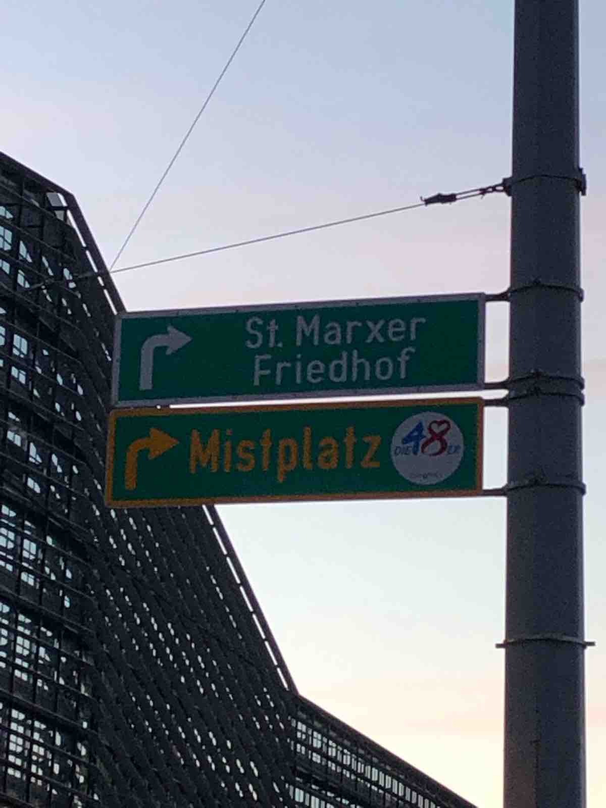 路面電車の71番は最終目的地が中央墓地の第3門で,私の行きたい音楽家の墓はそのひとつ前の停留所でした。しかし,中央墓地は午前8時に開門するということで,このまま向かっても少し早すぎました。そこで,この同じ71番で,もう少し手前のザンクト・マルクスという駅で降りると,そこから少し歩いたところにモーツアルトの墓のあるザンクト・マルクス墓地があって,そこは午前6時30分に開門するということだったので,先にそちらに行くことにして,電車を降りました。