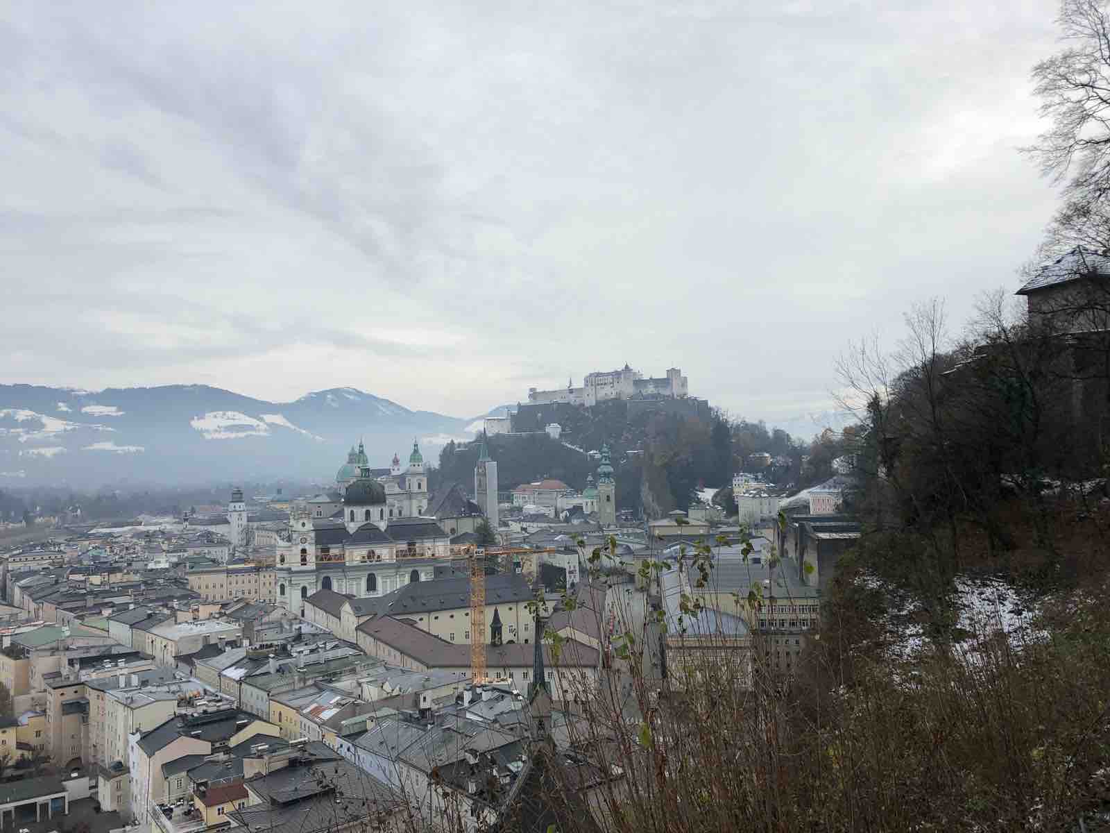 私が目指したのは町のシンボルであるホーエンザルツブルグ城塞だったのですが,ここに行くには,先ほどのゲトライデガッセを東に行くべきだったのです。それを近代美術館に行ったものだから,私は丘を延々と歩くことになってしまいました。ほとんど歩いている人はいませんでした。しかし,景色がよかったので,それはそれで悪くはなかったのですが,けっこうな距離でした。