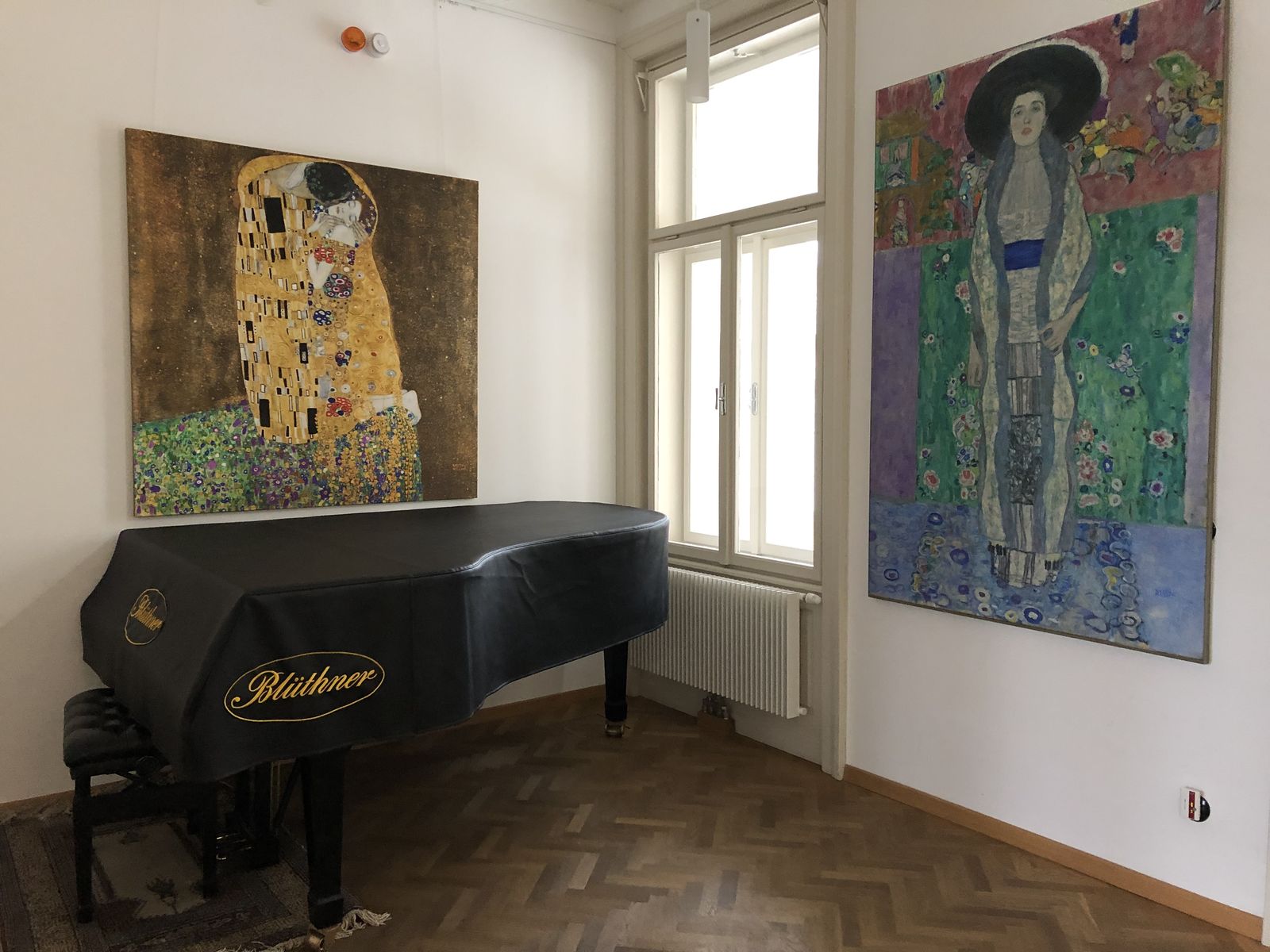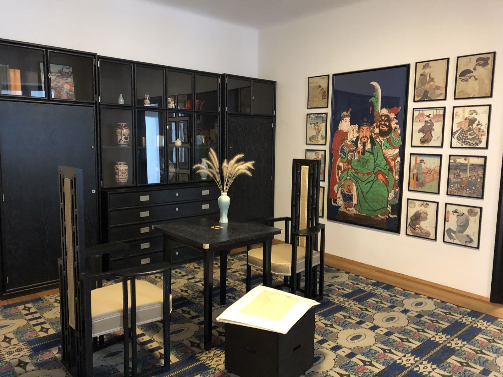 ここはクリムトが最後の6年を過ごした館を再現したところです。グスタフ・クリムトはウィーンに生まれたユーゲントシュティール様式を代表する画家です。アトリエがとても知的で美しく,クリムトの絵も展示されていて,心が満ち足りました。日本の浮世絵が飾られた客間もすてきでした。