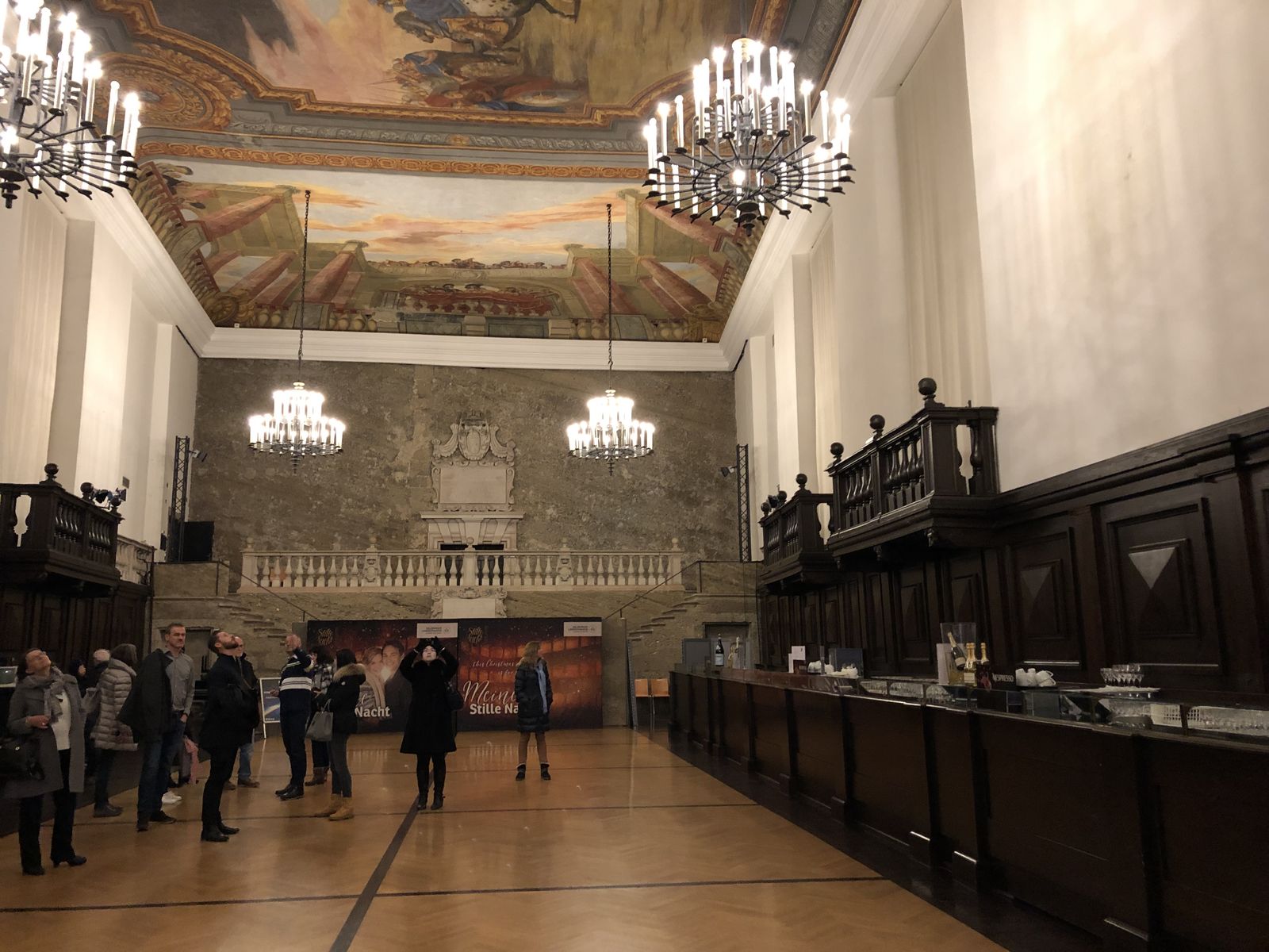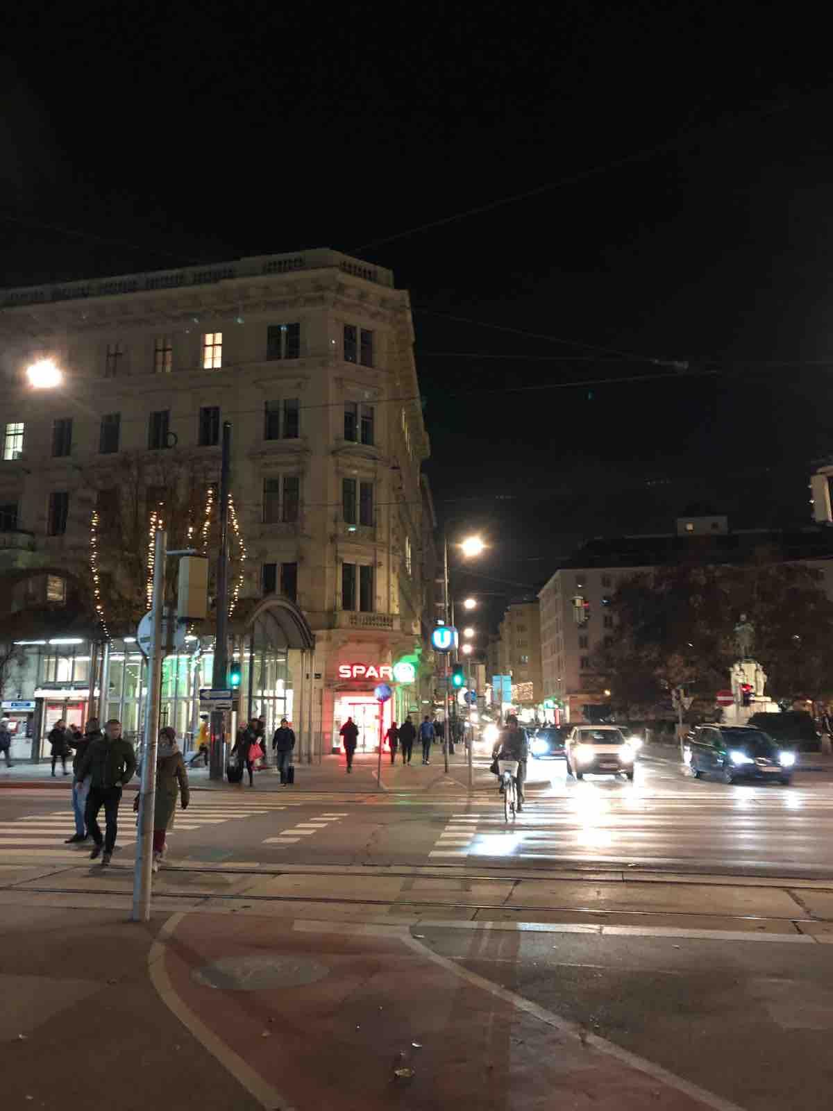 ホテルのチェックインを済ませて,様子見に一度外に出ることにしました。私の今回宿泊したホテルはなんと五つ星でしたが,宿泊代がアメリカの3分の1ほどとものすごく安く,来るまで信じられませんでした。場所もまた便利なところで,国立歌劇場も楽友協会も徒歩圏内でした。このように,ウィーンは私には意外続きでした。ホテルのすばらしさもまた,夏に行った最悪のアイスランドとは雲泥の差でした。