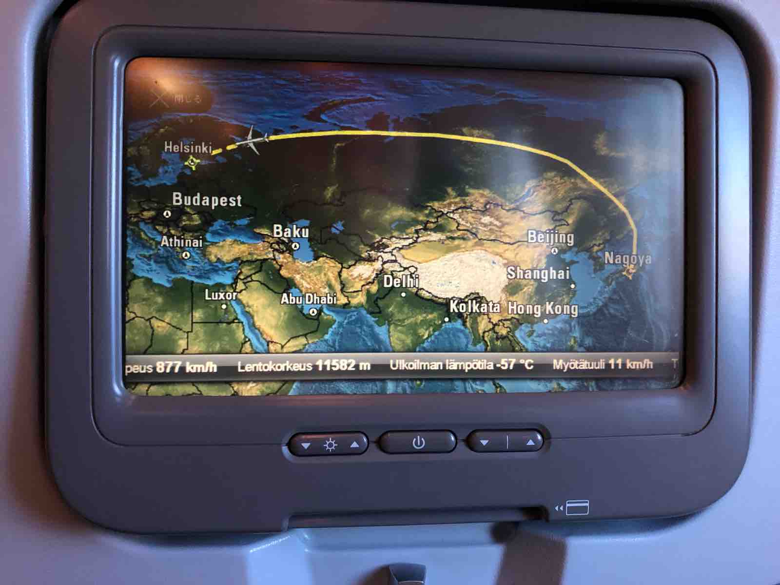 北極圏上空の空はお昼間とはいえ薄暗く,離陸してから機内はずっと夜のようなのですが,実際の時間は午後2時くらいで,ここで寝てしまうと今晩寝られないということになります。私はいつものように iPhone にノイズキャンセリングのイヤホンで音楽を聴きながらダラダラと過ごしましたが,迂闊にも眠ってしまったようで,1日目の夜に寝られなくなって困りました。フィンランド航空のエコノミーコンフォートにはノイズキャンセリング付きのヘッドフォンがついているのですが,これでは宝の持ち腐れです。