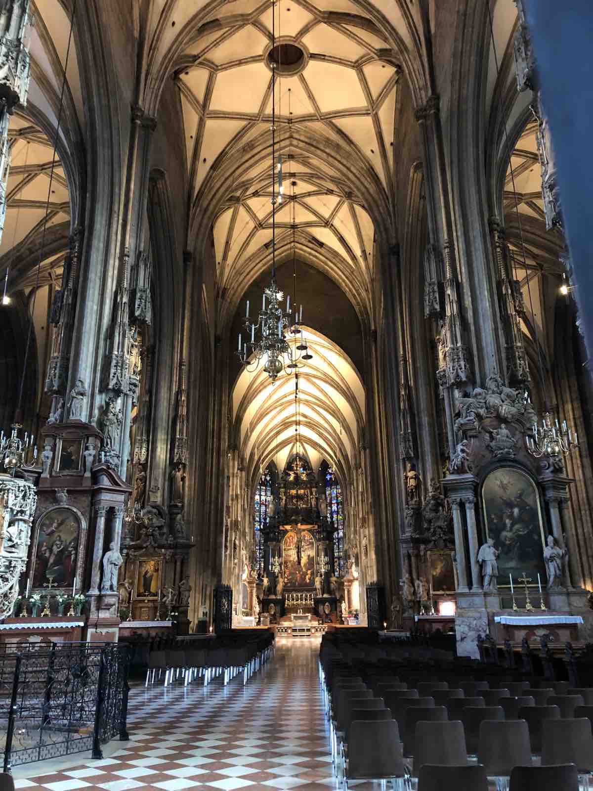 モーツアルトハウスから再びシュテファン寺院のあるシュテファン広場に戻って,とりあえず,シュテファン寺院に入りました。この寺院はウィーンのシンボル的存在で中はすごく広く,内陣は無料です。宝物館や塔,それに地下にあるカタコンベは有料でしたが,私は行きませんでした。次に行ったのがぺーター教会でした。私がペーター教会に行ったのは,そこを目指して行ったのではなく,このあたりにショパンやサリエリ,ハイドン,シューベルトなどが住んだ家の跡があって,そのプレートを探して歩いているうちに,偶然,教会にたどり着いたわけです。この日,私は,結局,プレートを見つけることができなかったのですが,偶然たどり着いたピーター教会で,午後3時にちょうどはじまった無料のオルガンコンサートを聴くことができました。この旅では,このオルガンコンサートだけでなく,多くの偶然に恵まれて,きわめて密度の濃い旅になりました。