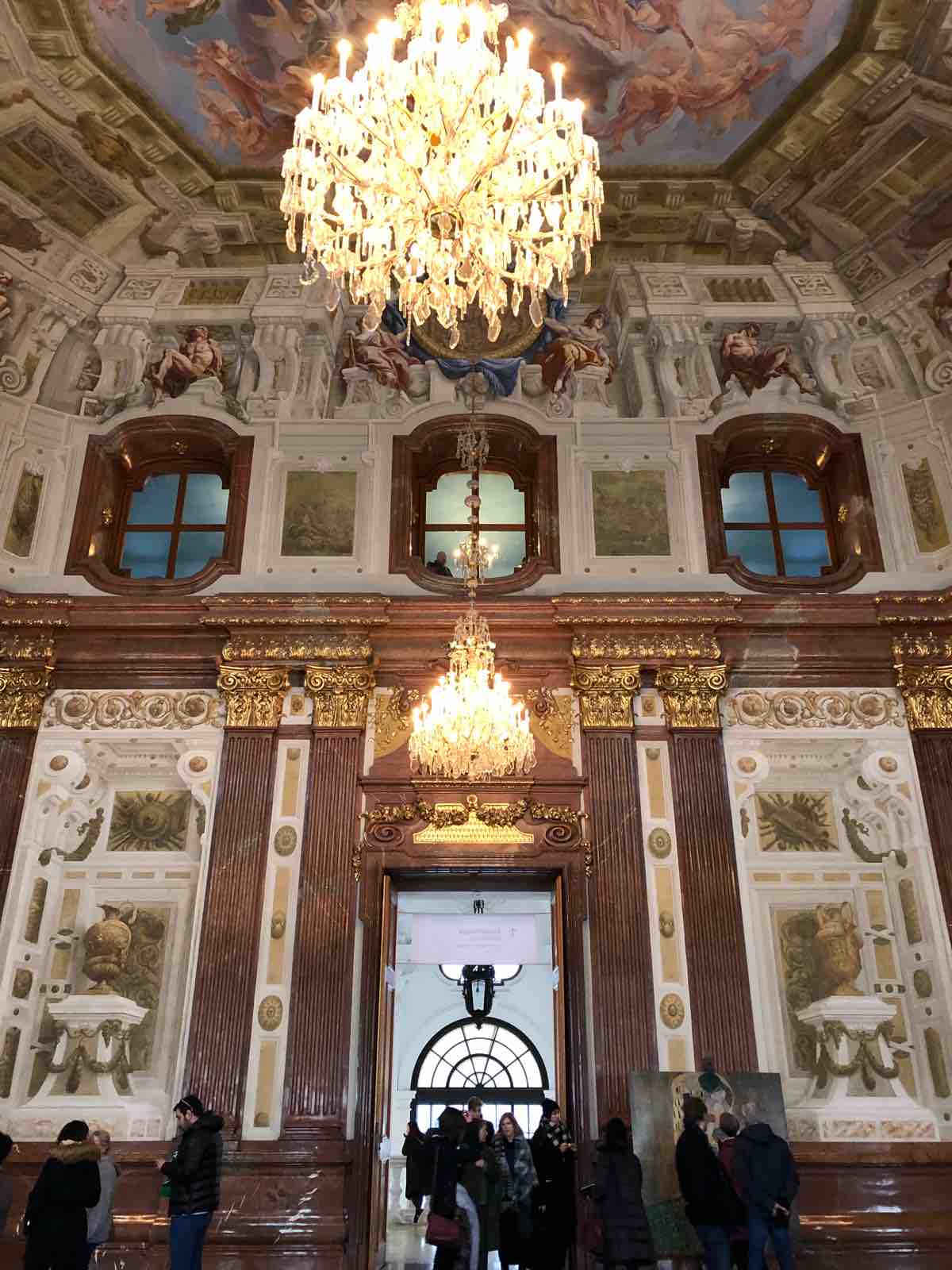 ここは宮殿というよりもむしろ美術館なので,豪華な宮殿のなかで絵画を味わう,という場所です。ウィーンは音楽だけではなく,絵画に関しても一流で,さまざまな場所に有名な絵画が展示されているので,音楽や美術に関心があれば,どこに行っても楽しいのです。この宮殿というか美術館に展示されているのは19世紀から20世紀にかけてのオーストリア絵画で,なかでもグスタフ・クリムトのコレクションは世界最大です。クリムトのほかにも,シーレ,ココシュカ,マカルトといったウィーン世紀末の絵画が多数展示されています。