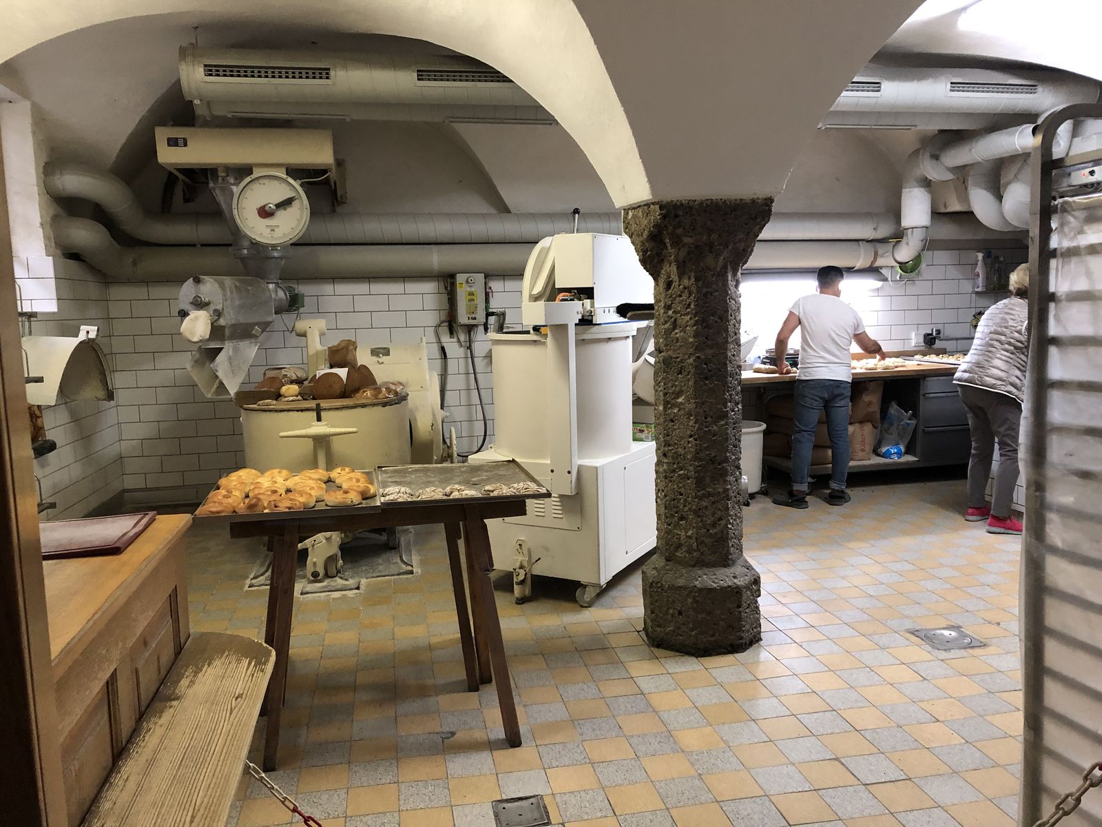 ザンクト・ペーター教会に付属してシュティフト・ペッケライというパン屋さんがあります。ここは西暦1200年くらいから続く最古のパン屋さんです。少し入りにくかったのですが,思い切って入ってみると,ちょうどパンを作っているところでした。他に数人の観光客も入ってきて,店員さんにパンを注文していました。私もまねをしてカイザーゼンメルというパンを1個買いました。