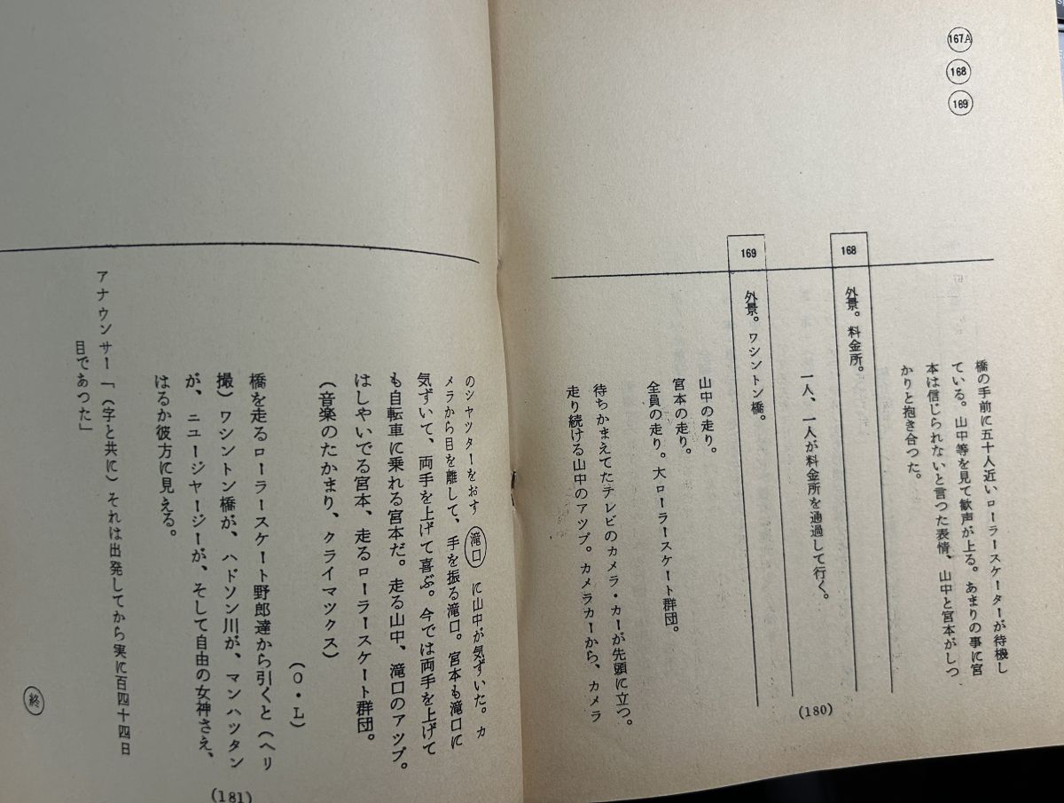 また,なぜか,映画「ロングラン」の台本があります。映画「ロングラン」は,若者がローラースケートでアメリカ大陸を横断する,というもので,その最後はニューヨークのワシントンブリッジをローラースケートで駆け抜けるシーン。これに憧れました。憧れは現実となったのですが,私が横断したのは,ワシントンブリッジではなくブルックリンブリッジだったし,ローラースケートではなく徒歩でした。