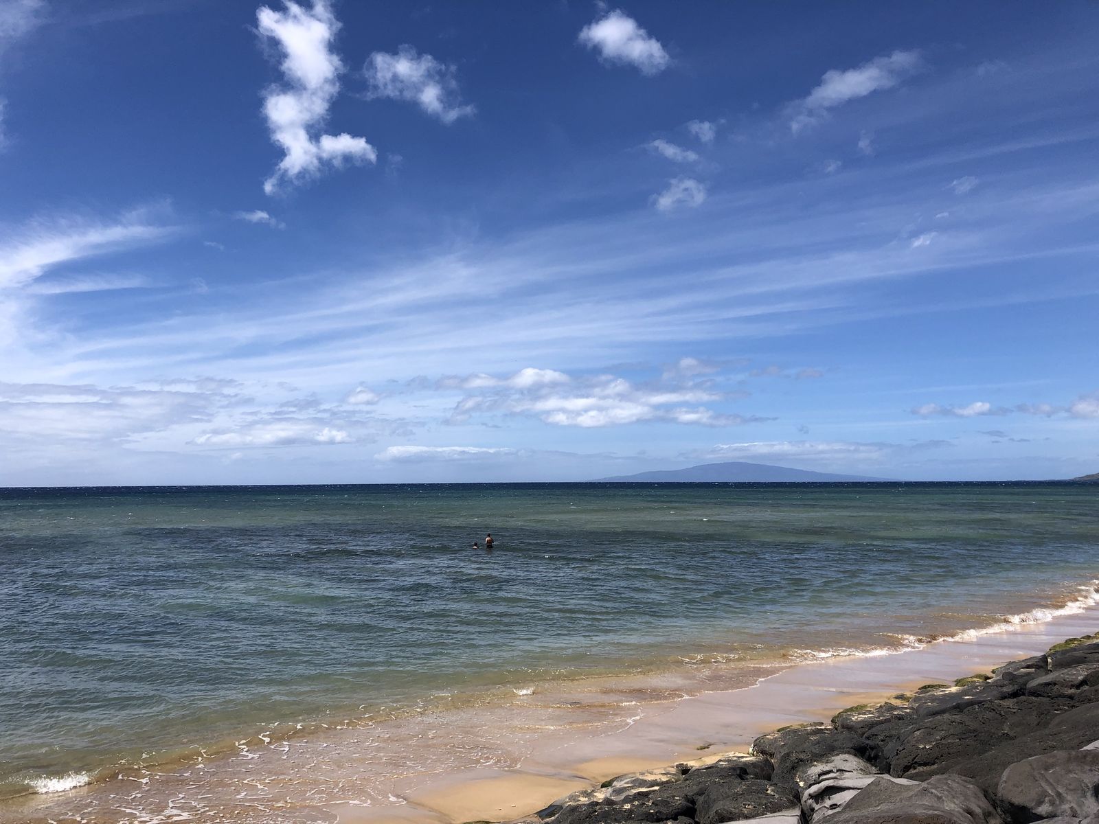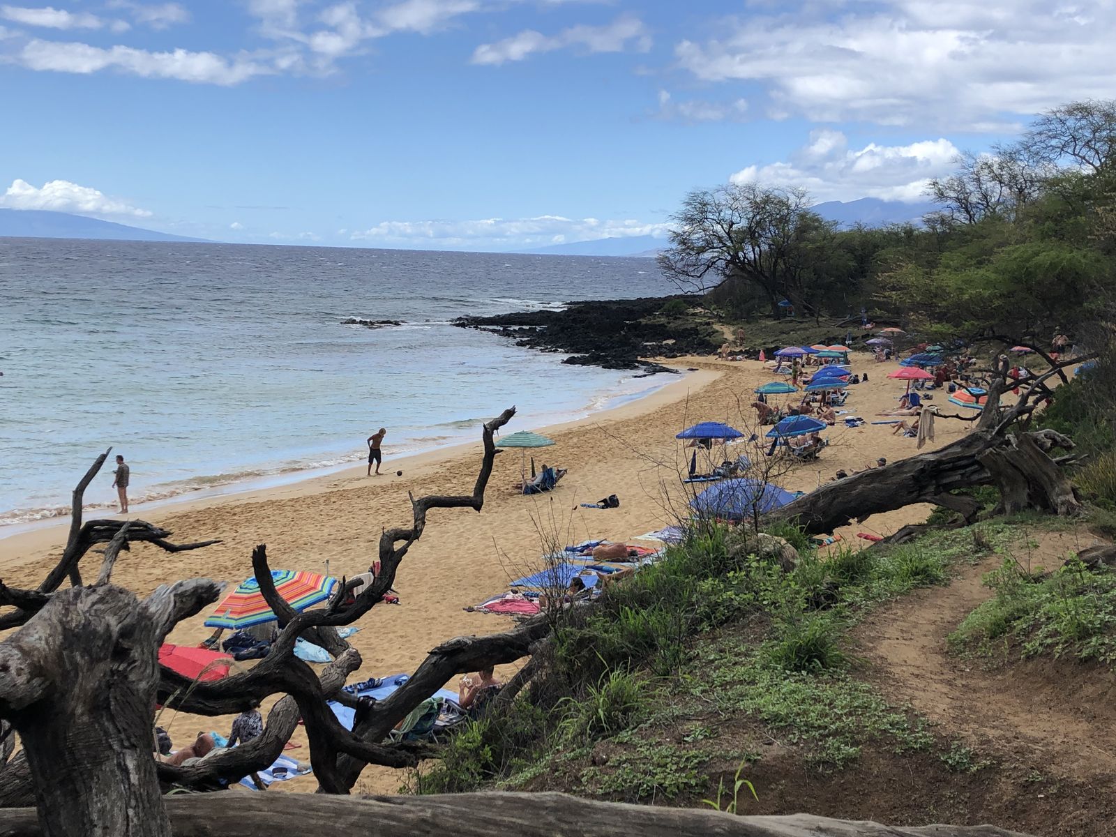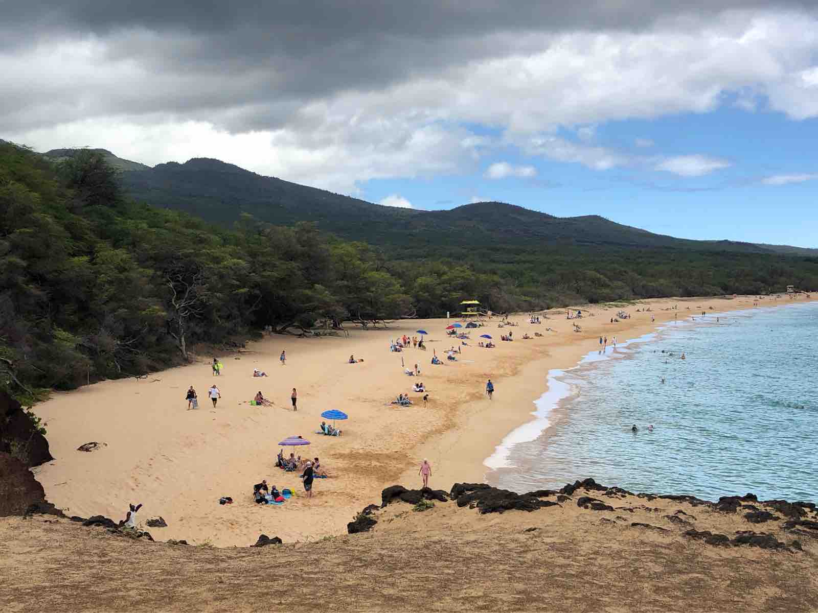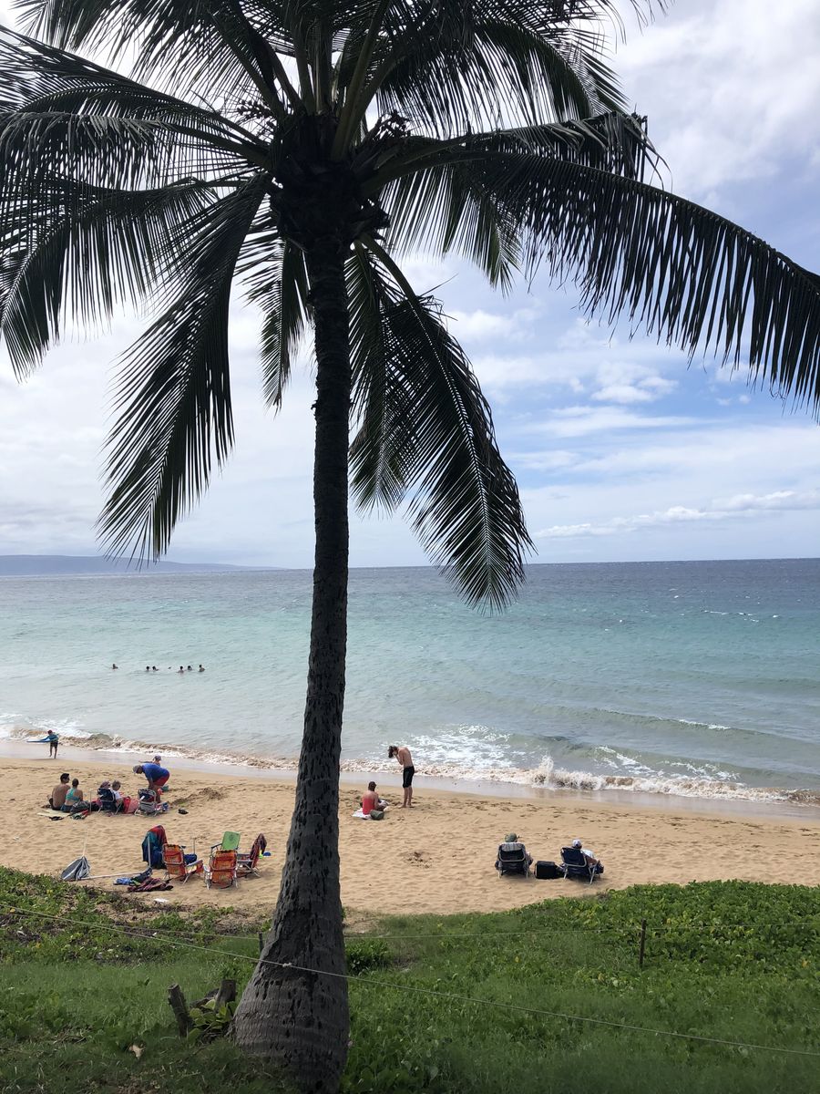 並んでいると,偶然,私の後ろにEさんがいました。いくら狭いとはいえ,マウイ島で偶然出会うなんていう不思議なことが起きるものです。びっくりしました。その結果,この先の予定は変更。今日もまた,Eさんとビーチで海を眺めて1日を過ごすこととなりました。今日過ごしたのはマケナビーチではなく,キヘイのコマオレビーチでした。こちらは砂浜は狭い代わりに,砂にまみれることもなく,ベンチもあるので,それはそれで過ごしやすいところでした。