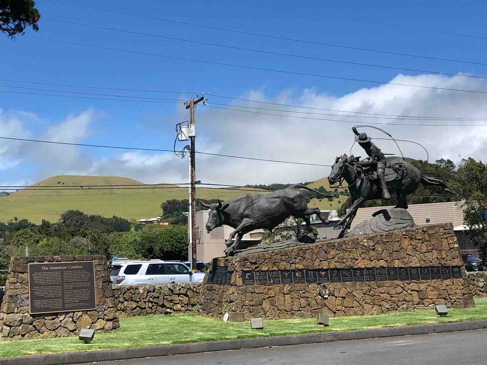 ワイメアには東京23区の1.5倍もの広さがある大牧場があります。州道19号を走っていると町の中に入っていくので見逃すのですが,よく見ると周りは牧草地帯で,牛やら馬の姿も見えます。