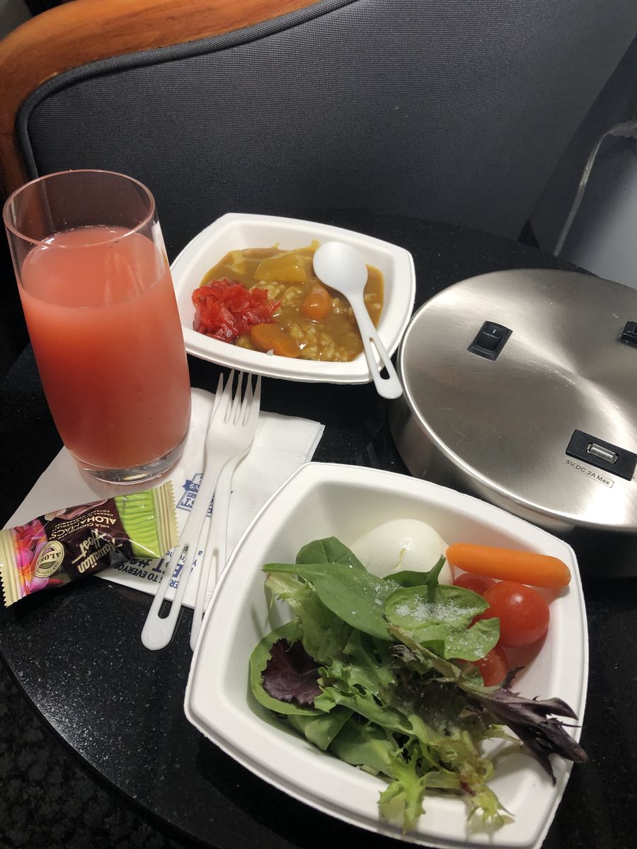 私は,海外旅行に行って何が食べたくなるかというとおそばとカレーライスなのですが,今回はホノルルの空港のラウンジでも機内でもカレーライスを食べることができました。