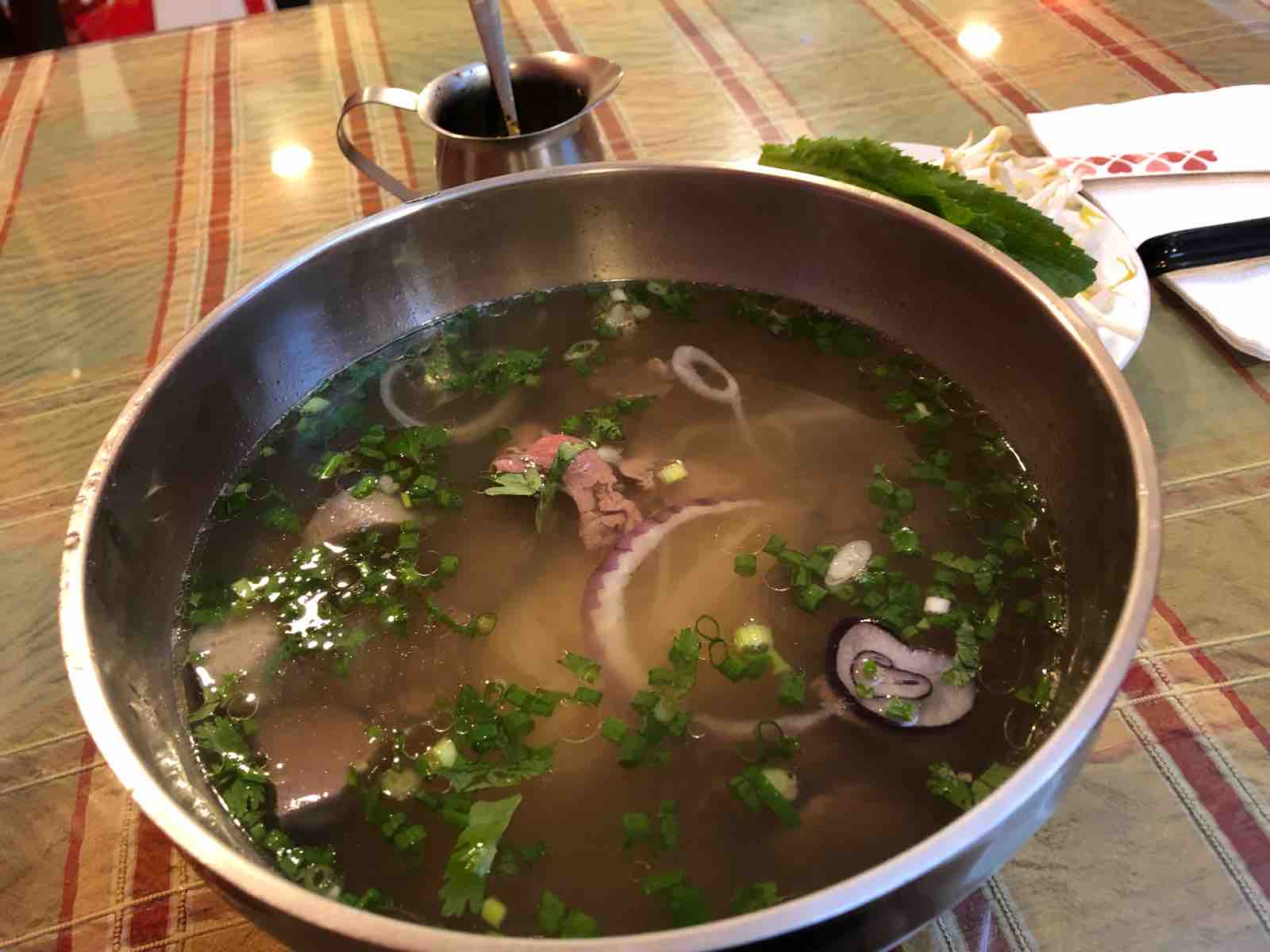 そこでそのお店の近くにあったベトナム料理店に入りました。ベトナム料理といってもメニューにあるのはフォーばかりでした。フォーというのは日本のきしめんのようなもので,違いは原料が米粉と水,つまりライスヌードルの一種です。それはいいとして,いろんな種類があってさっぱりわかりません。スープやサラダ具が違うということなのでしょうか,どれを選んでも値段は一緒だったし,まあ何を選んでもいいかと半分目をつぶり適当に注文しました。