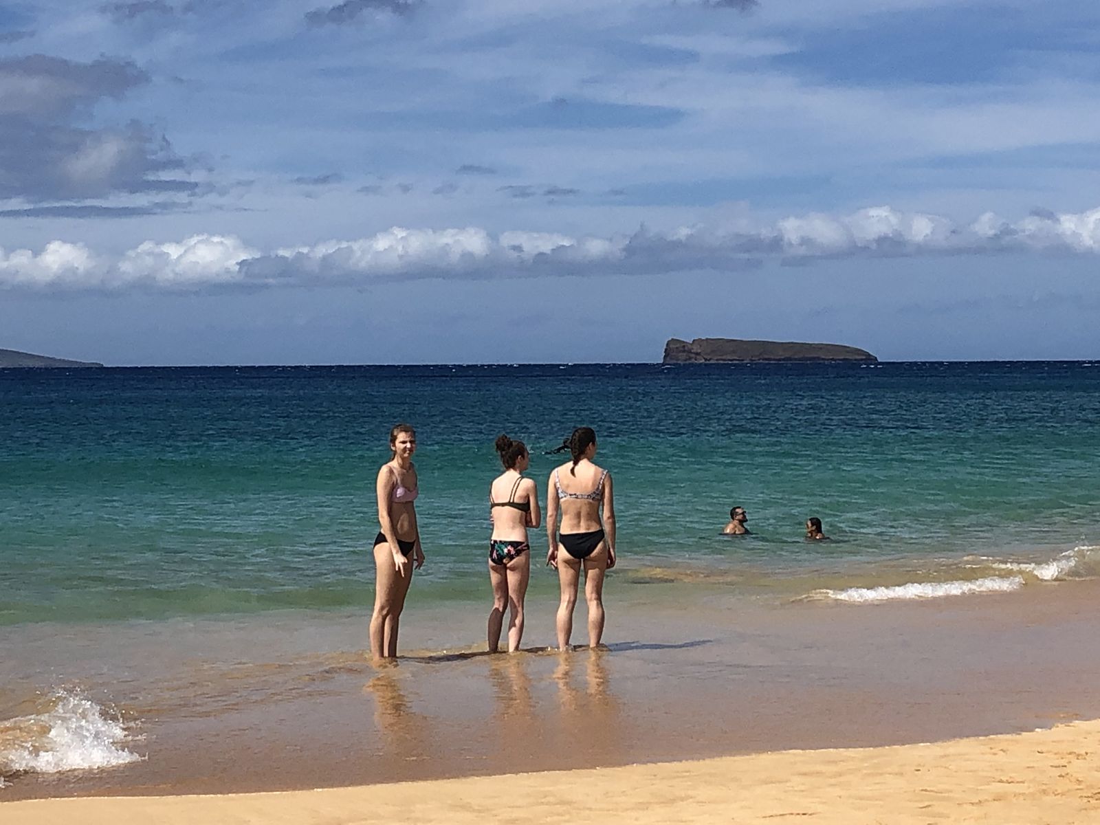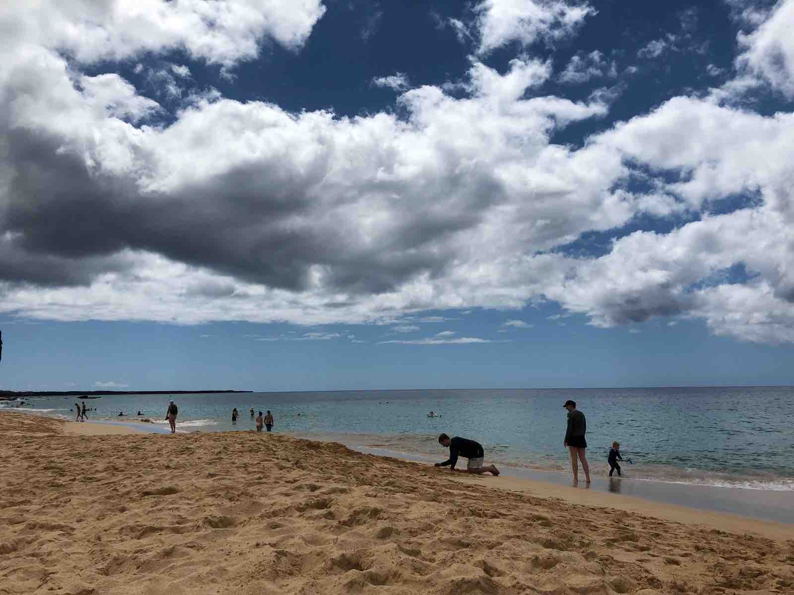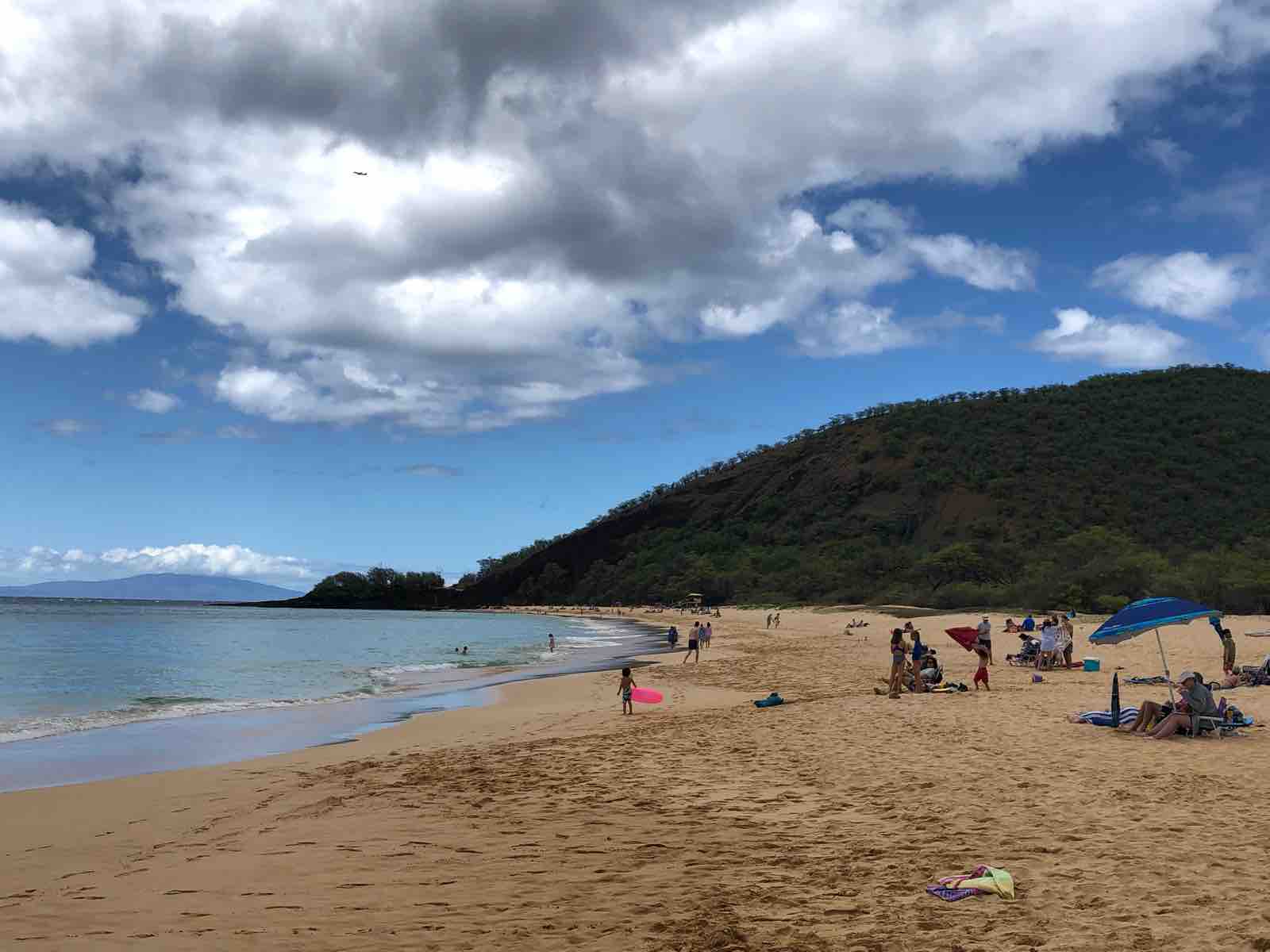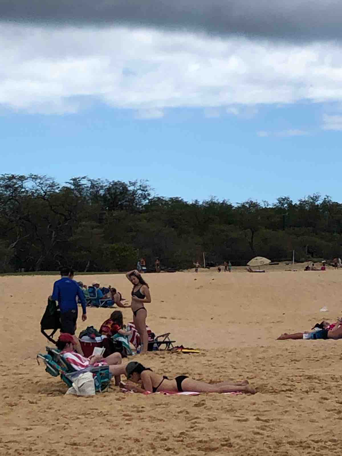 今日,私の宿泊しているカフルイはさほどいい天気でなかったのですが,マケナビーチに着くと時折薄雲が太陽を隠すほどのいい天気でした。少し雲があるのが幸いで,快晴だとすぐに日焼けしてしまうのであとが大変なのです。ビーチで過ごすには日焼け止めは必須です。こうして私はEさんに教えられて,ハワイのビーチでの過ごし方を覚えました。