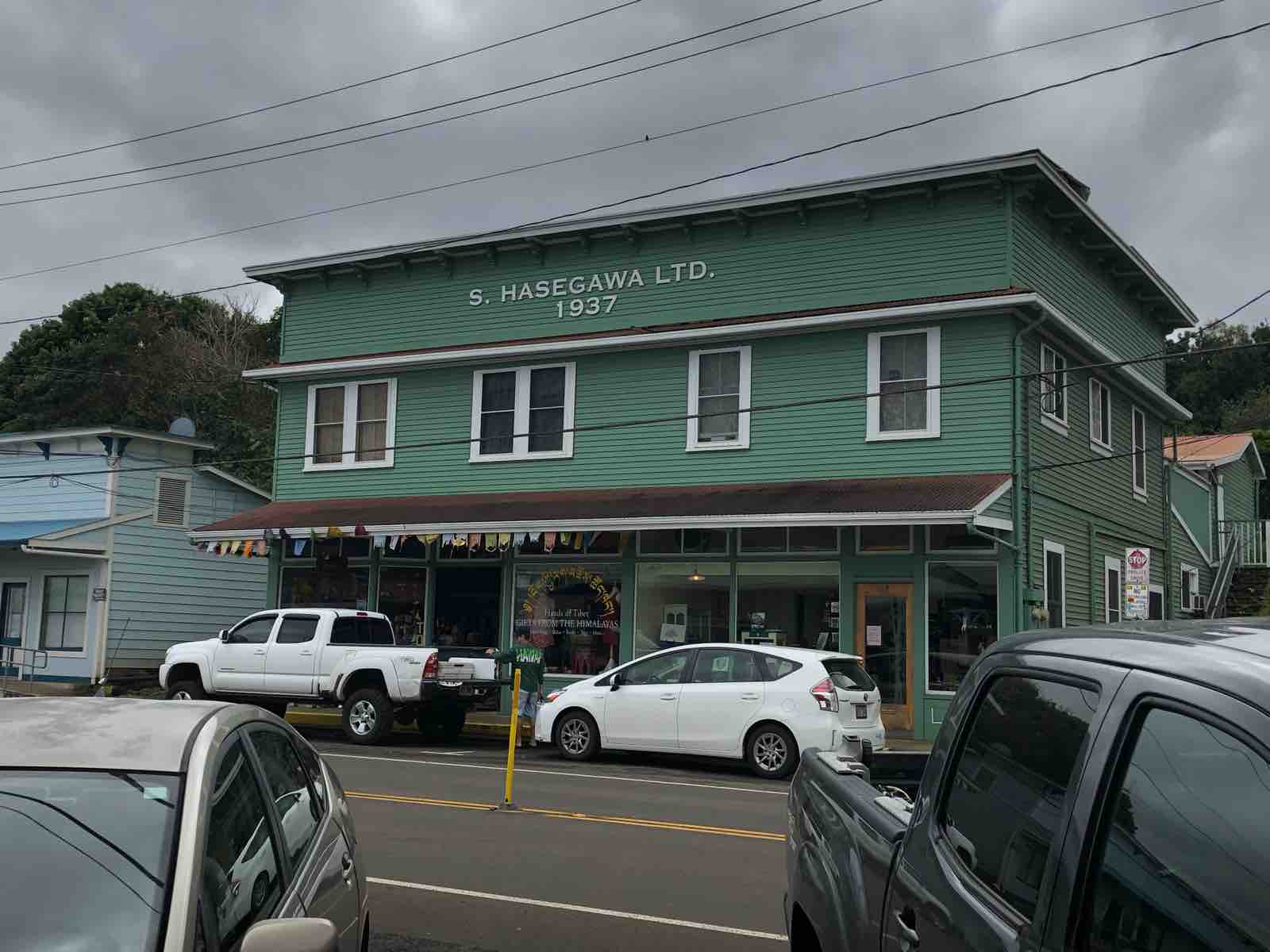 トレイルから戻って再び車で走っていくと,ハワイ・トロピカル・ボタニカル・ガーデンに出ました。そこには行ったことがあるのを思い出しました。そのときはかなり暑かった記憶があるのですが,この日は寒く,とても同じ場所とは思えませんでした。このあと,ずっと海岸にそって州道19号線をたどり,やがて着いたのがホノカワという古びた町でした。この町もまた以前通り過ぎたことがありますが,今回は車を停めて歩いてみることにしました。