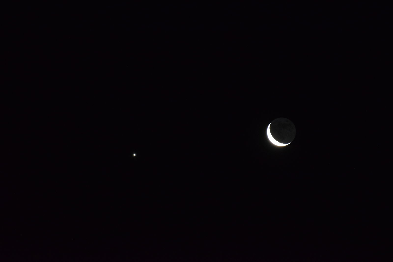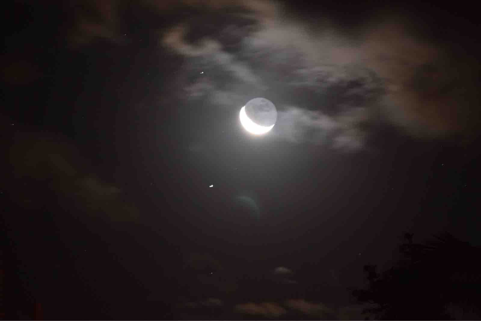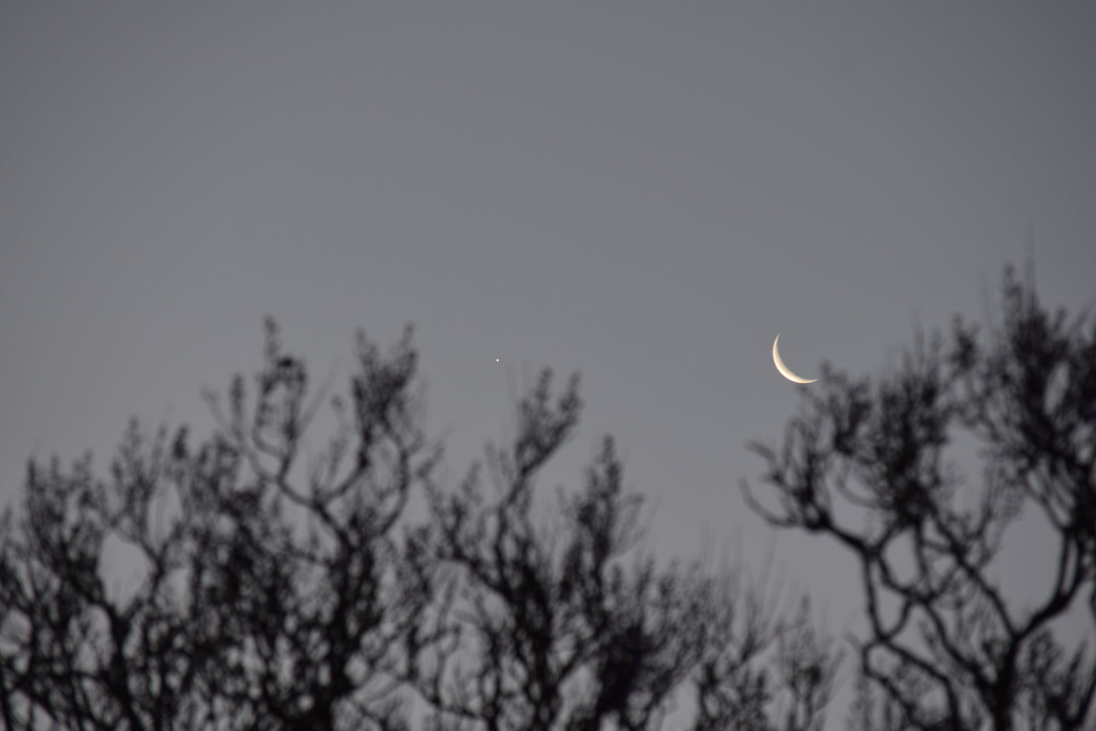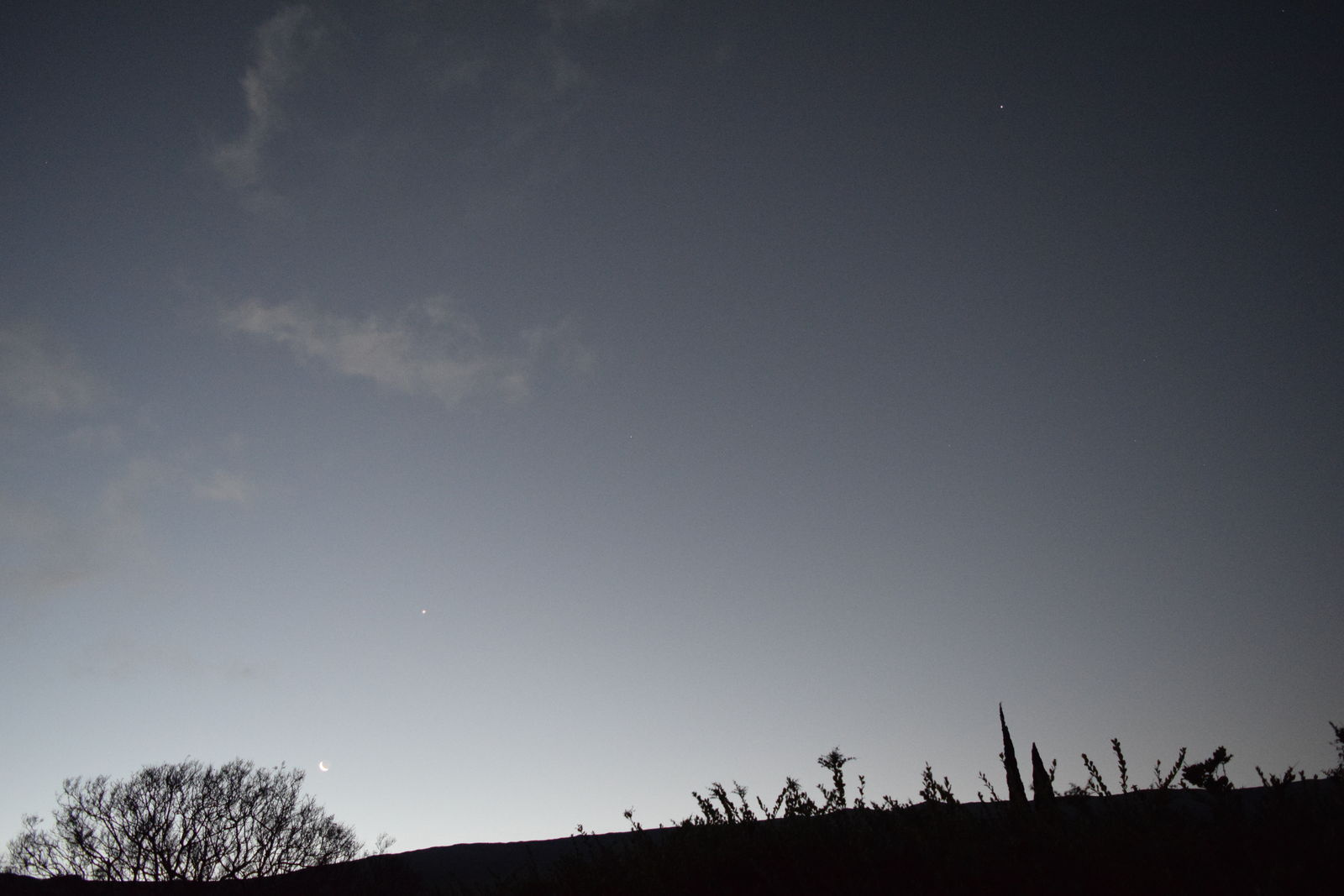 一昨晩は一晩中宿泊先のB&Bで星の写真を写しましたがそれですっかり満足して,昨晩はよく寝ました。昨晩は戸や窓を締め切ったために,寒さもまったく気になりませんでした。朝は6時ころに起床したのですでに夜は白んでいて星は見えませんでした。それもまた承知の上で,私が見たかったのは夜明け直前に昇る月齢27の月でした。外に出てみると,ちょうど昇ったばかりの月が白みはじめた東の空に見えて,それは幻想的でした。