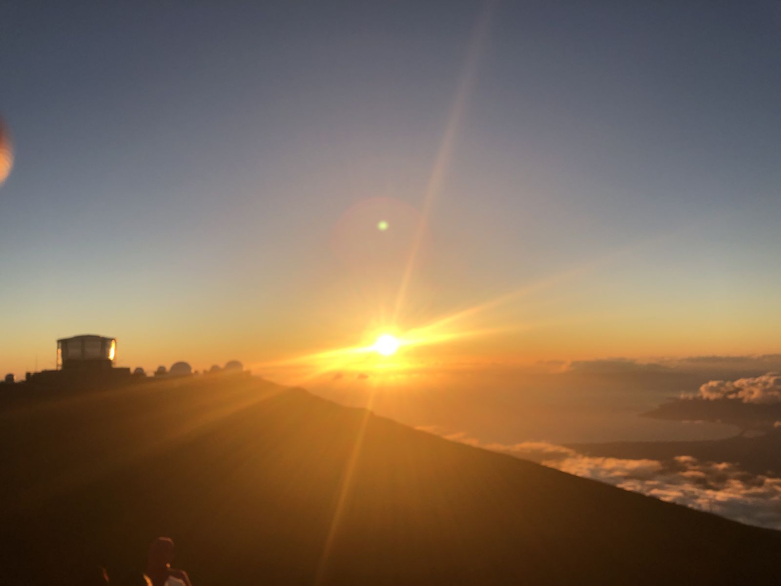 夕日を背にプロポーズをしているカップルがいました。彼らもまた,恥ずかしげもなく「見て,私たちたちを見て」状態で,指輪を渡していました。その一方で,日本人の女子大生らしいふたり組が日本語を話しながらやってきました。ツアーのバンできたのでしょう。彼女たちは夕日を写真に収めようと動き回りながら「あの変な建物が邪魔なのよねえ」とか言っていました。彼女たちが変な建物というのはハレアカラの天文台のことです。アホかと思いました。猫に小判,豚に真珠というのはこのためにあるような表現です。