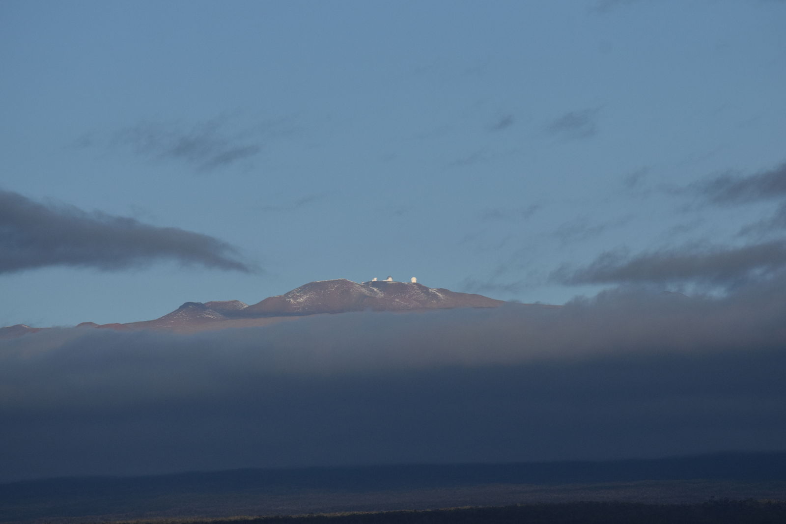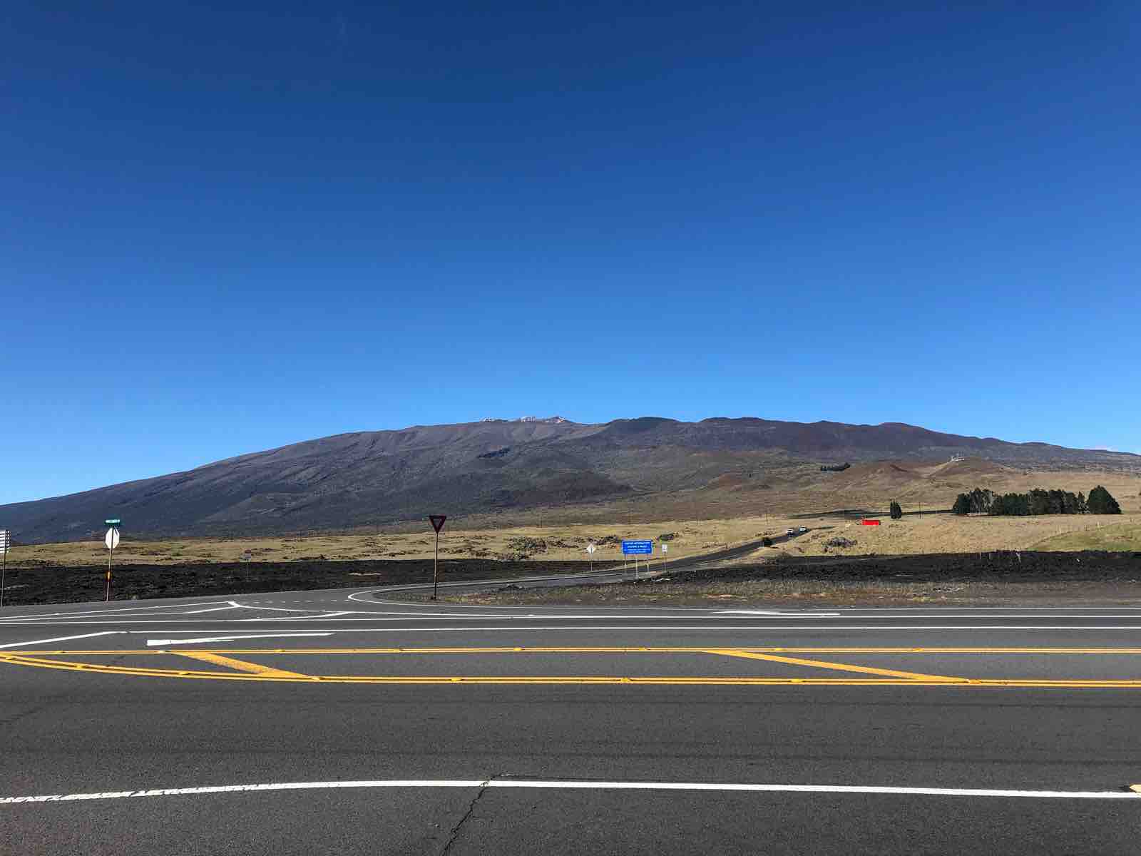 その後,ワイメアを目指して州道190号線を北上していたときに,やっと地上からマウナケア山頂に輝くすばる望遠鏡のドームを眺めることができました。つまり,ハワイ島ですばる望遠鏡のドームを地上から見ることができるのは,このワイメアの町付近だけなのです。
