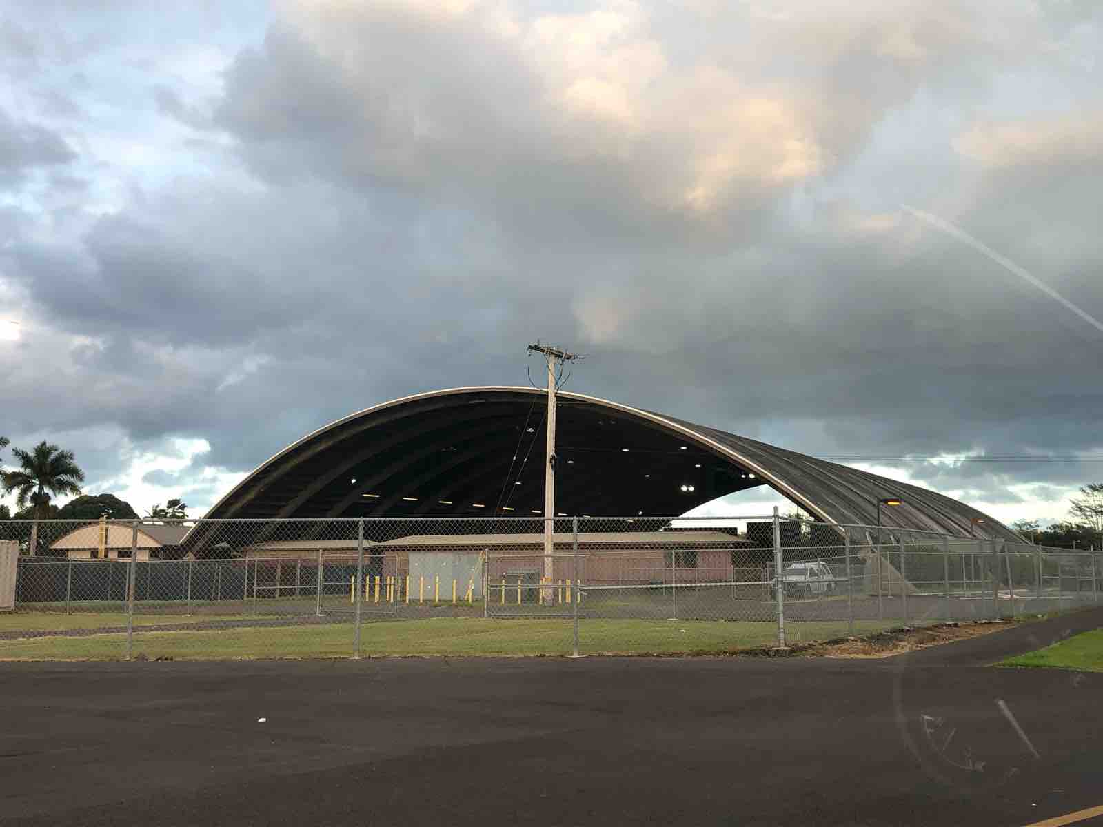 カメハメハ大王像を見終えてからさらに車で走っていくと,その近くにスポーツ公園がありました。そこには野球場をはじめとしたスポーツ施設が建てられていますが,その一角にどこかで見覚えのある建物を見つけました。