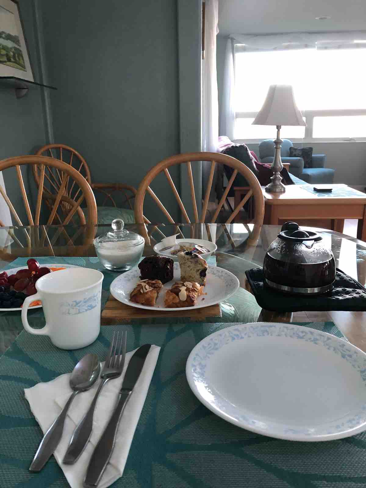 2日目の朝が来ました。このコテッジは朝食のサービスがあるというより自分で賄うという方が正解なのですが,準備されている食材はパンとシリアルと果物くらいのものです。それでもまあお腹を満たすには十分です。部屋にあったコーヒーはさすがにコナコーヒーでした。