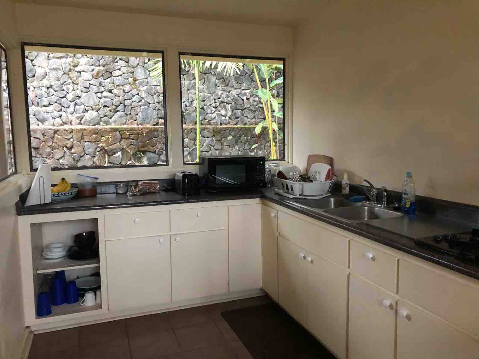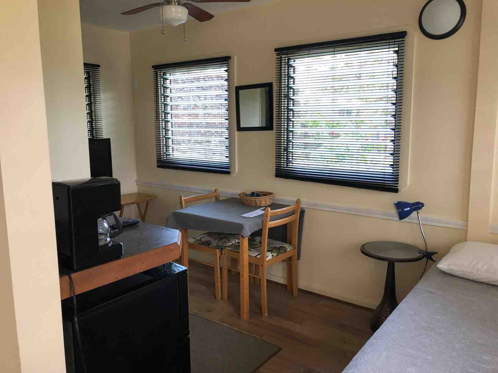 このコテッジは部屋が全部で4部屋くらいで年配のオーナーがやっている民宿みたいなところです。多くの日本人の考えるハワイとはまったく違う世界です。朝食のサービスはあってキッチンに用意されたものから自分で適当に作ります。