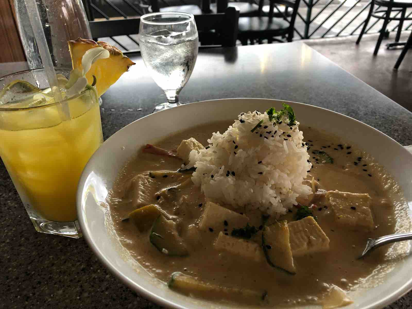 食べたのはカボチャカレーでした。そしてもちろんパイナップルジュースを追加しました。ここはオープンエアのレストランで,外から見ていると入りたくなる雰囲気のところです。メニューはハンバーガーやタコス,グリルなどでボリュームがありリーズナブルということです。