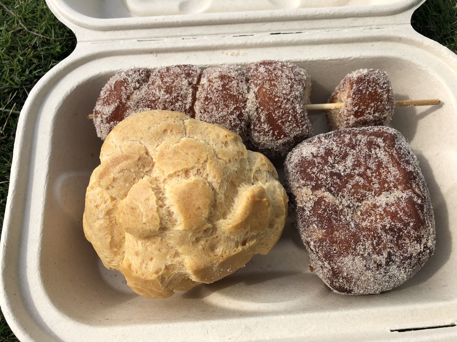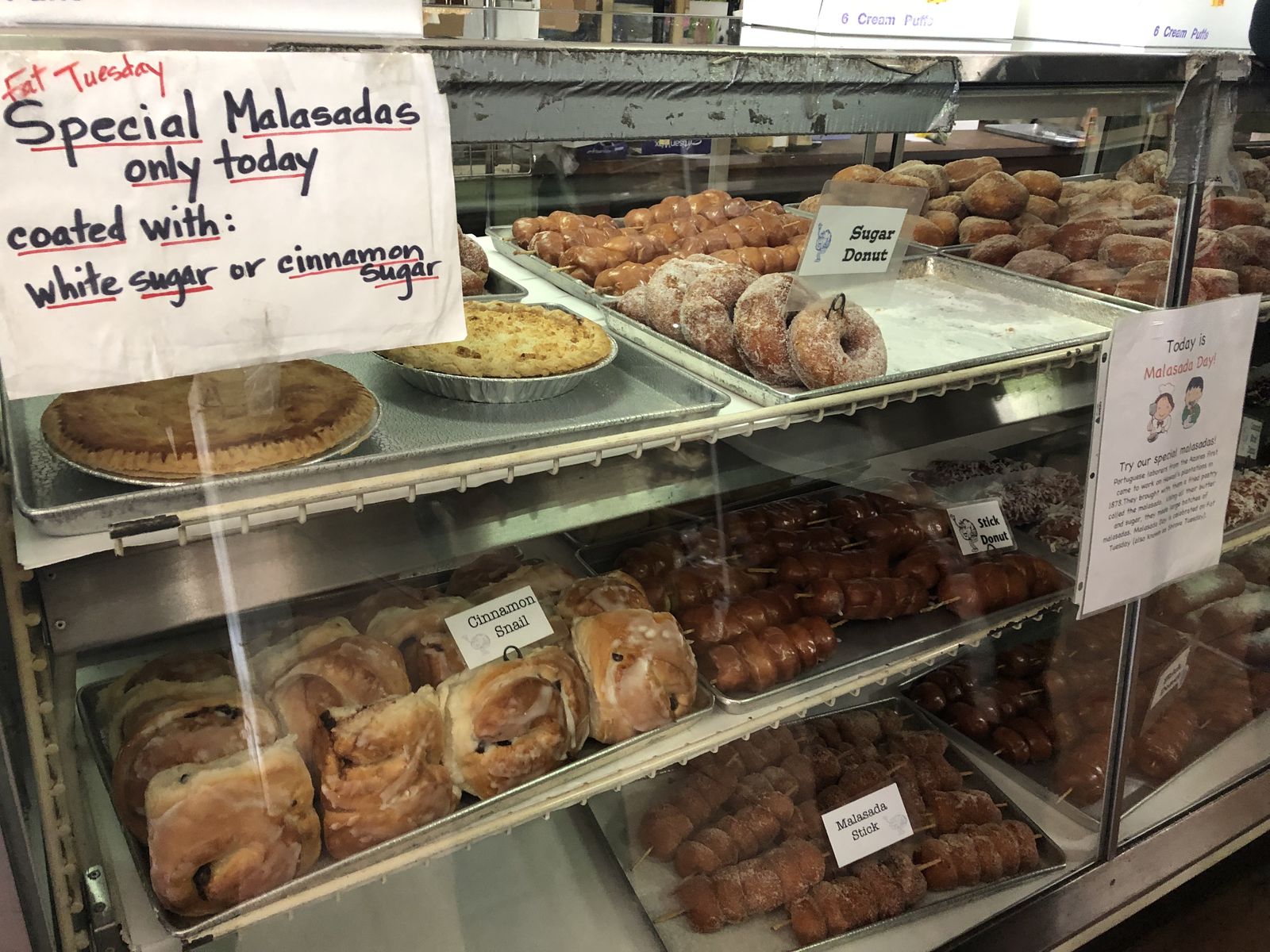 幸い,ちょうどお店の前の道の駐車スペースが空いて,私はすぐに車を停めることができました。お店にはすでに列ができていました。私は名物の串刺しドーナッツを買うつもりできたのですが,ちょうど火曜日でスペシャルマラサダの販売がありました。それもまた偶然のことでした。