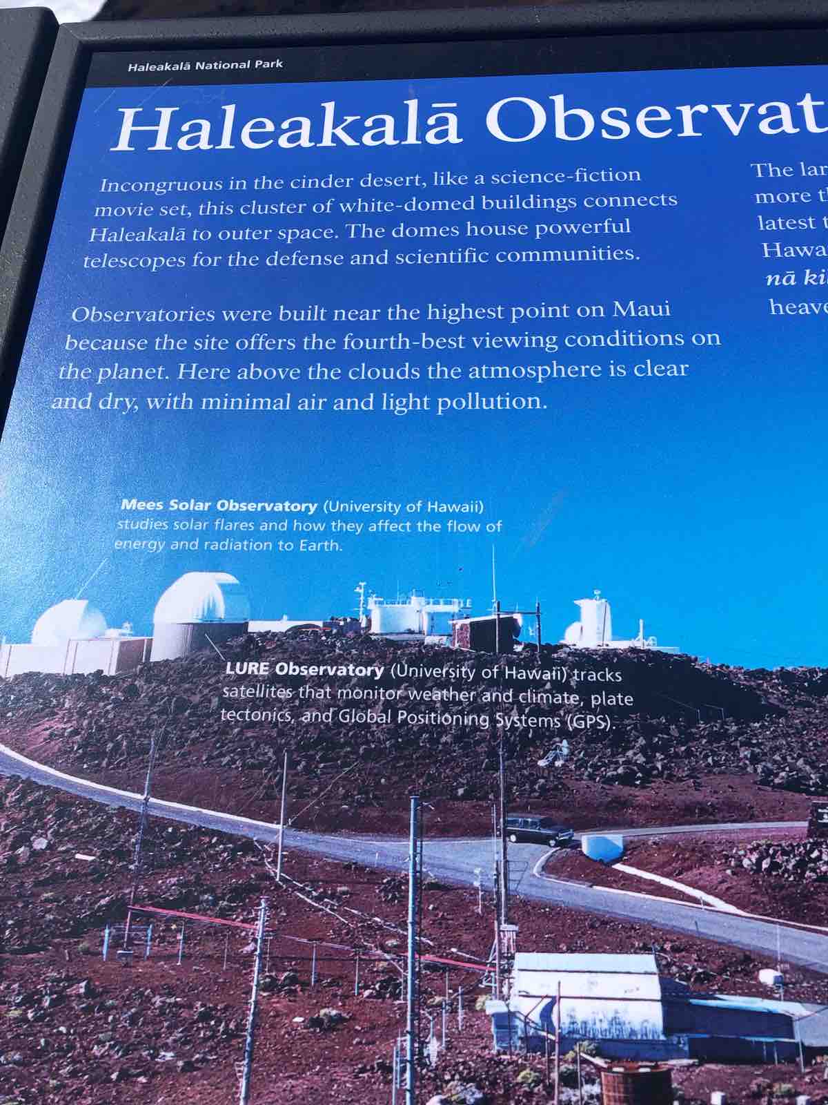 今日は,今回の旅でマウイ島に来るまで予定がなかったハレアカラ山頂に登ることにしました。前回3度も登ったのですが,帰国して以来,ハレアカラ山頂の天文台が何度かテレビに出てきたこともあって,もう一度しっかり見てみたいものだと思いたったからです。ただし,残念ながら,ハレアカラ山頂の天文台はドームを見ることができても,望遠鏡自体を見ることはできないのです。見学コースもなく,完全に研究用として使われています。逆にいえば,このことを考えてもなかり「マジ」な研究用の施設に思えます。